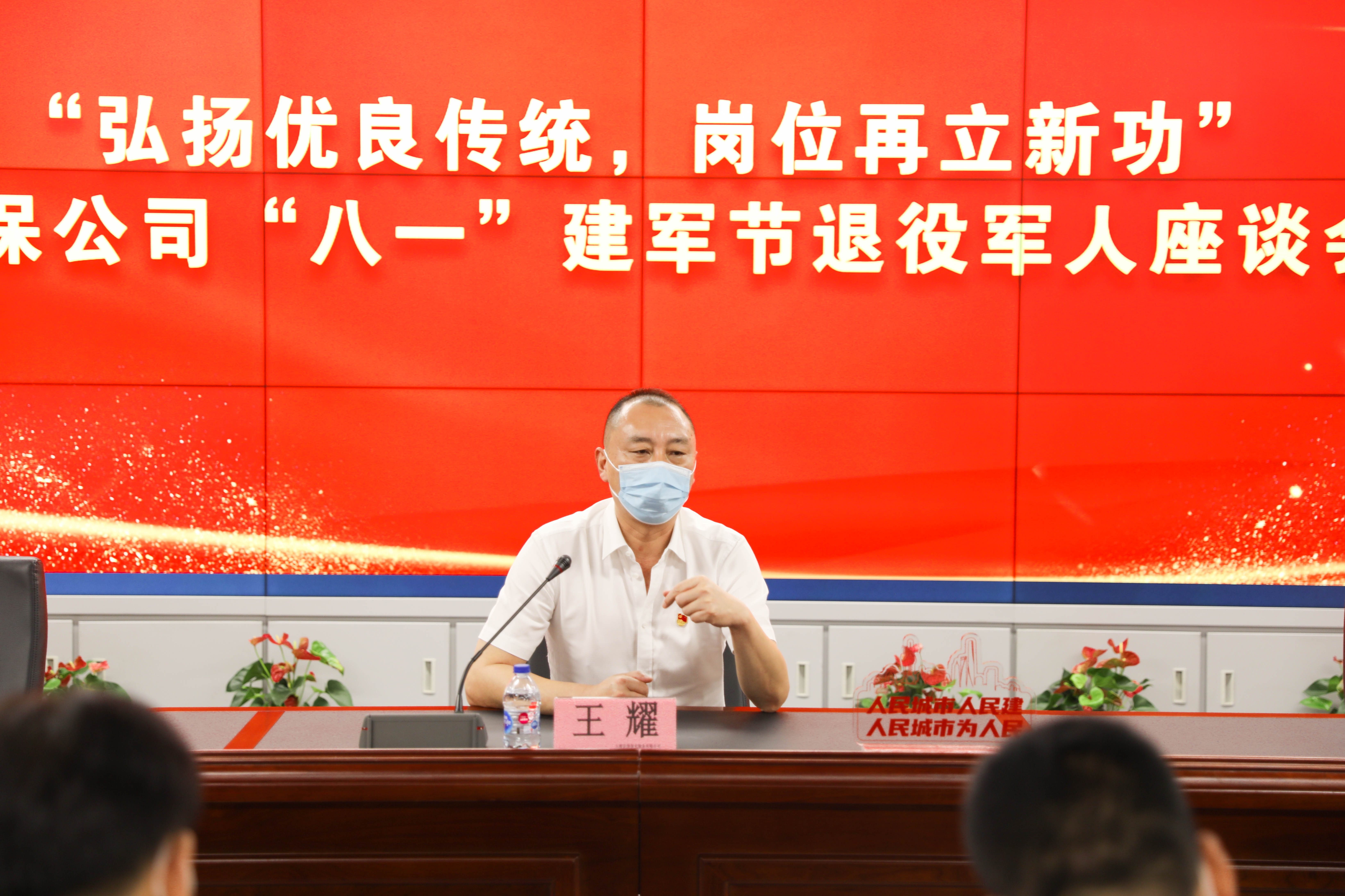 7月31日下午,宗保公司以“弘揚優(yōu)良傳統(tǒng) 崗位再立新功”為主題,召開紀念建軍95周年退役軍人員工座談會。公司董事長王耀,副總經(jīng)理侯留勇、達飛,部分退役軍人員工代表參加會議。