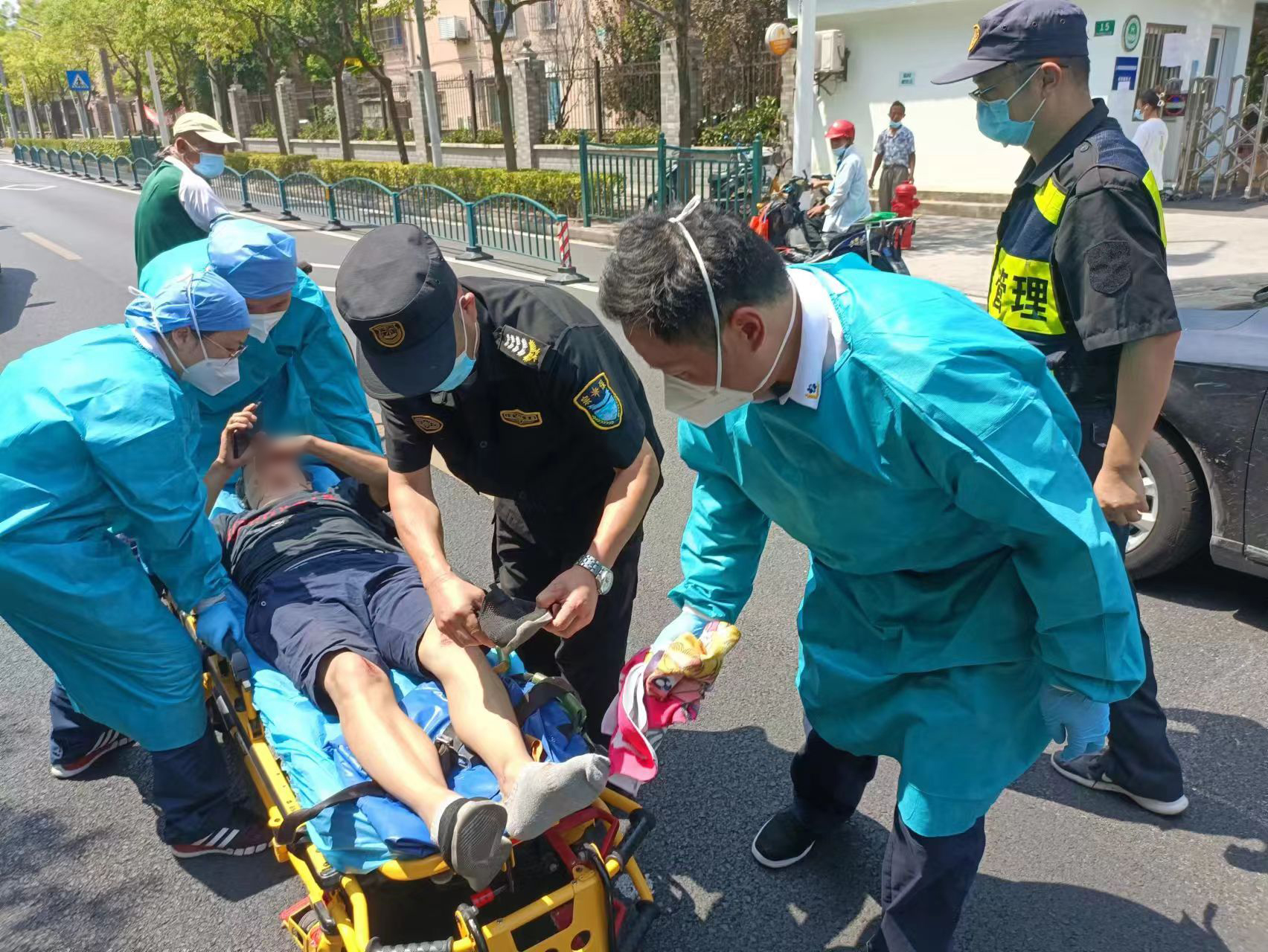 8月10日,宗保公司駐三林鎮(zhèn)市容項(xiàng)目隊(duì)員救助車禍傷者。