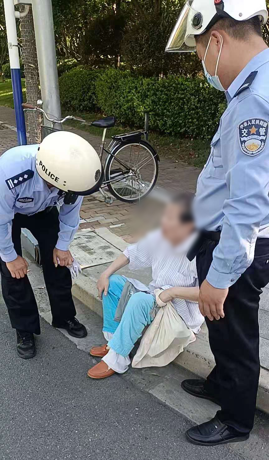 當(dāng)日7:10,汪俊連在吳中柏樟附近值勤時(shí),發(fā)現(xiàn)一位老人摔倒在馬路上。老人用手撐著地,自己想站起來,但試了幾試都沒有成功。汪俊連見狀,趕緊跑上前將老人從地上扶起,攙坐到路邊。