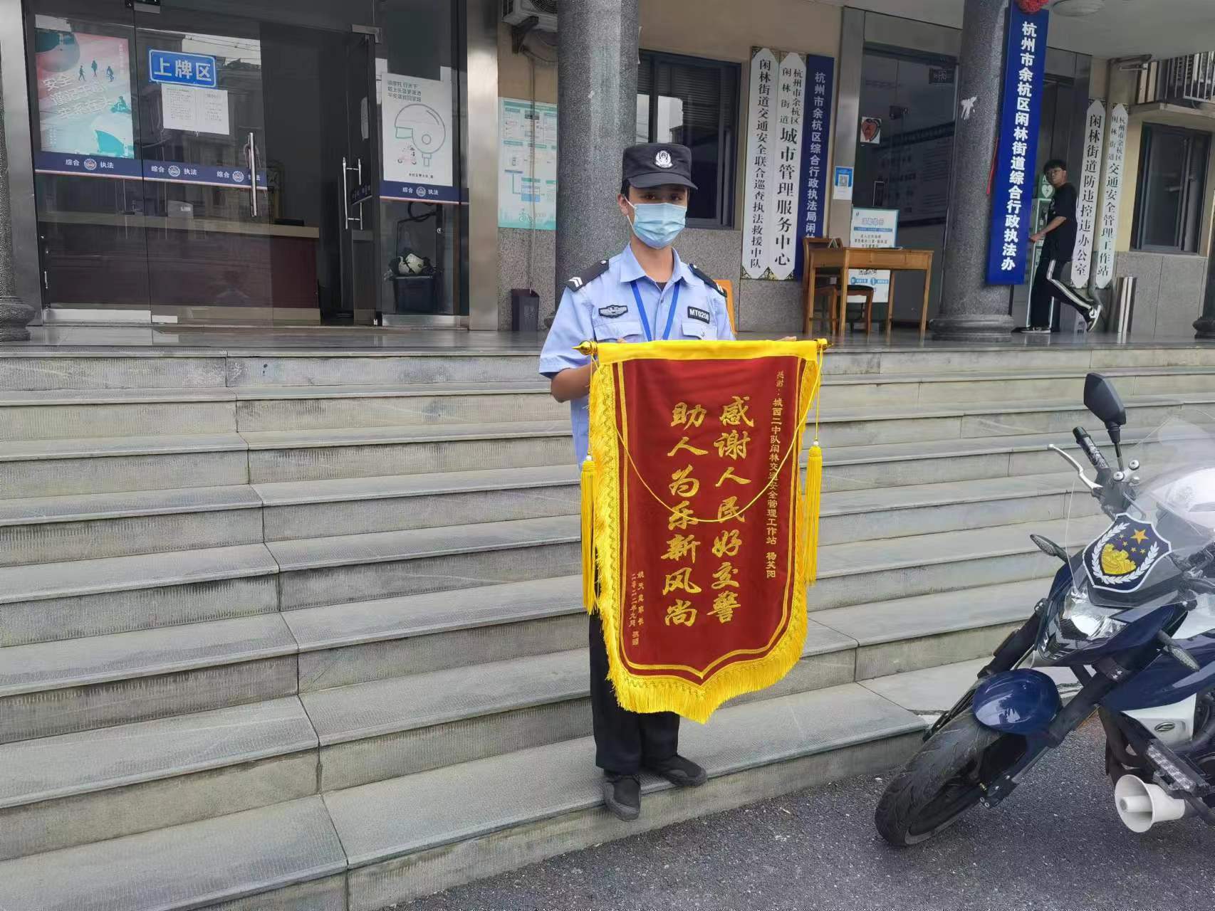 9月13日,浙江民泰公司駐杭州市余杭區(qū)閑林市容項(xiàng)目員工楊笑陽(yáng)收到市民姚女士送來(lái)的一面繡有“感謝人民好交警 助人為樂(lè)新風(fēng)尚”的錦旗,感謝他冒雨守護(hù)小學(xué)生的行為。