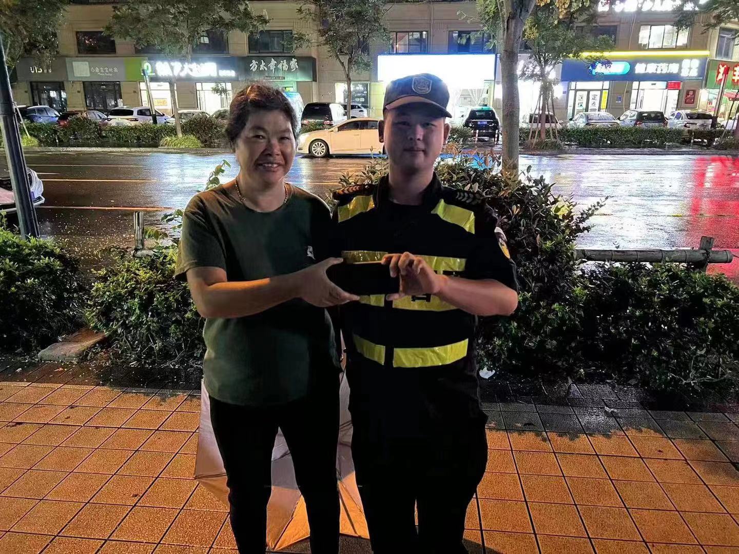 當(dāng)晚臺(tái)風(fēng)“梅花”來(lái)襲,路上幾乎看不到行人。張彬洋冒著風(fēng)雨一直在原地守候,直至一女子打來(lái)電話(huà)尋找。張彬洋簡(jiǎn)單了解情況后,就與女子約好碰面的時(shí)間和具體位置。