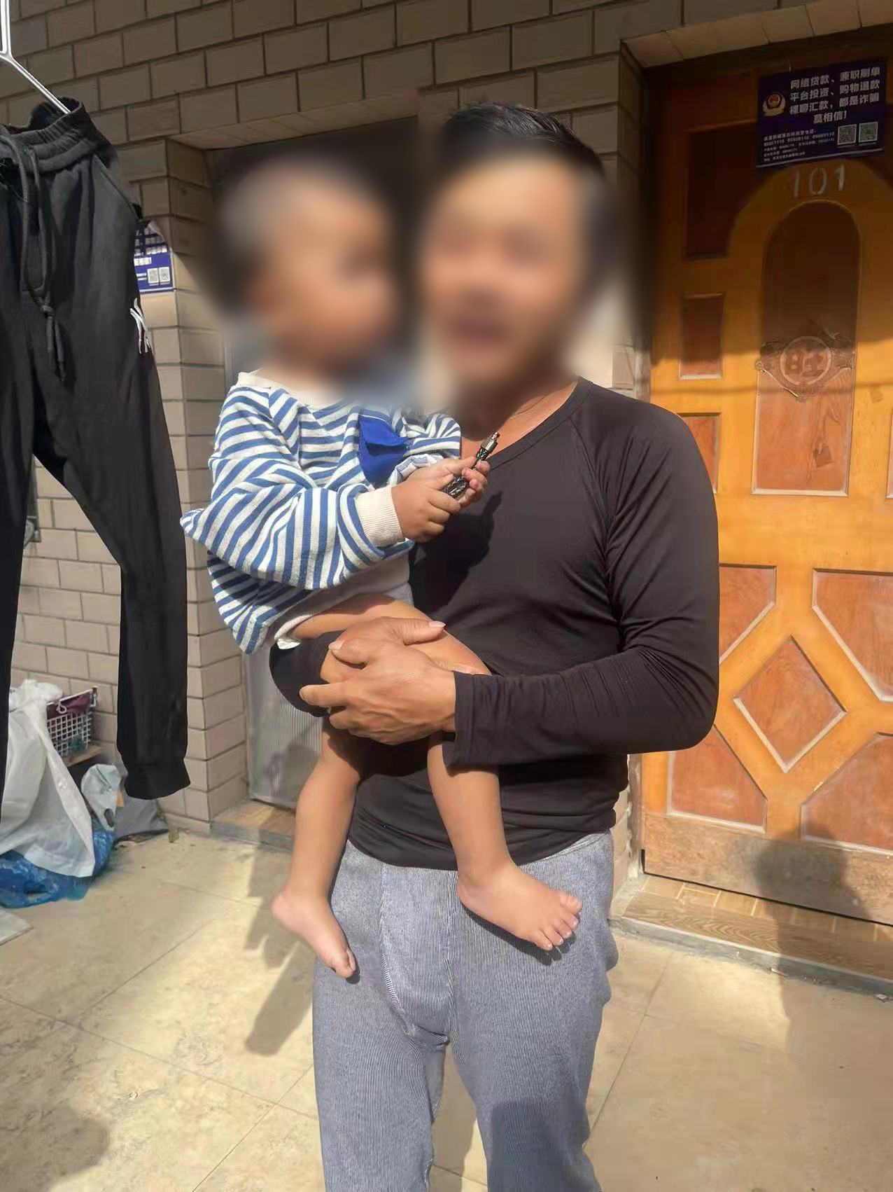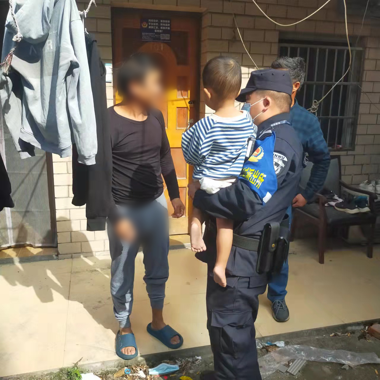 得知小男孩家在附近,兩人便抱著小男孩挨家挨戶詢問,打聽是否有人認識小男孩。在熱心吳女士和飯店阿姨等人的共同努力下,經(jīng)過半個多小時的尋找,終于找到了正在睡覺的小男孩爺爺。