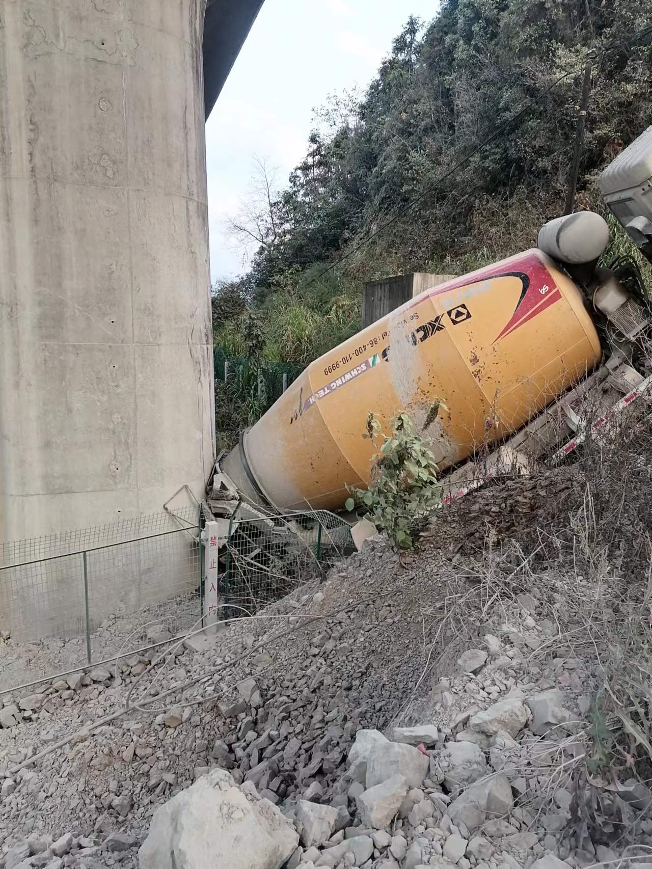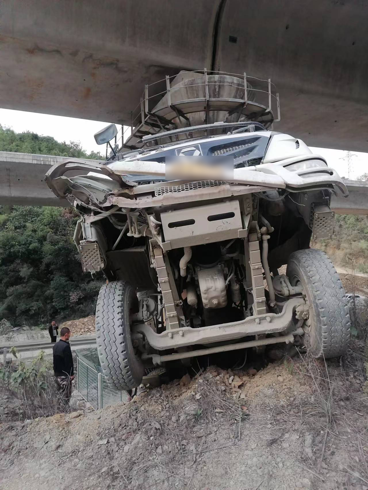 當(dāng)日16:52,公司員工吳敏紅在杭黃高鐵外塢特大橋K123+161處巡邏時(shí),發(fā)現(xiàn)一輛水泥罐車從20號橋墩處掉下,撞擊并卡在橋墩上動(dòng)彈不得,嚴(yán)重威脅著高鐵線路的行車安全。