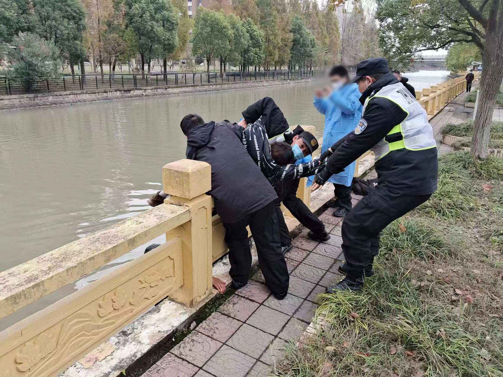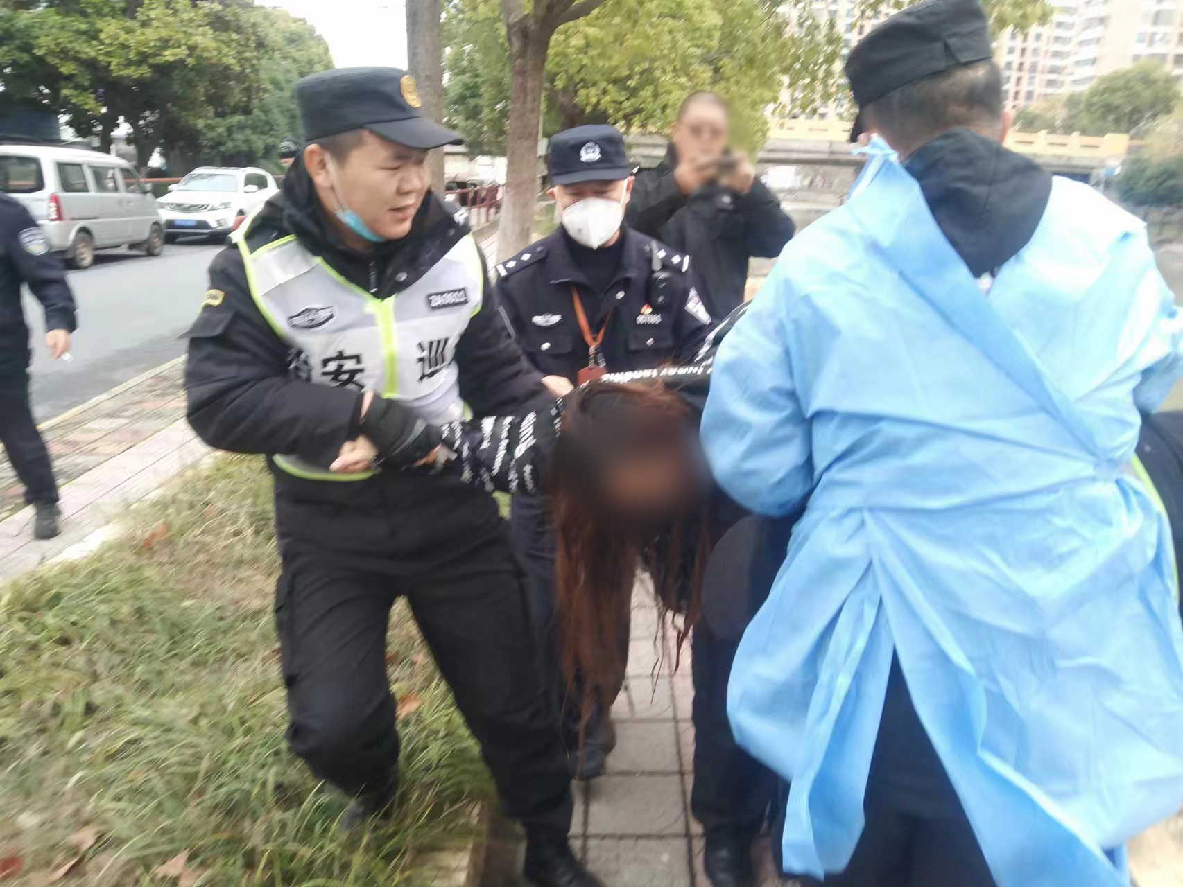 當(dāng)日13:10,公司員工朱路路在值勤時,看見橫沔江路56號對面有一女子跳河輕生,便邊向河邊跑邊用對講機呼叫同事趕緊過來幫忙。