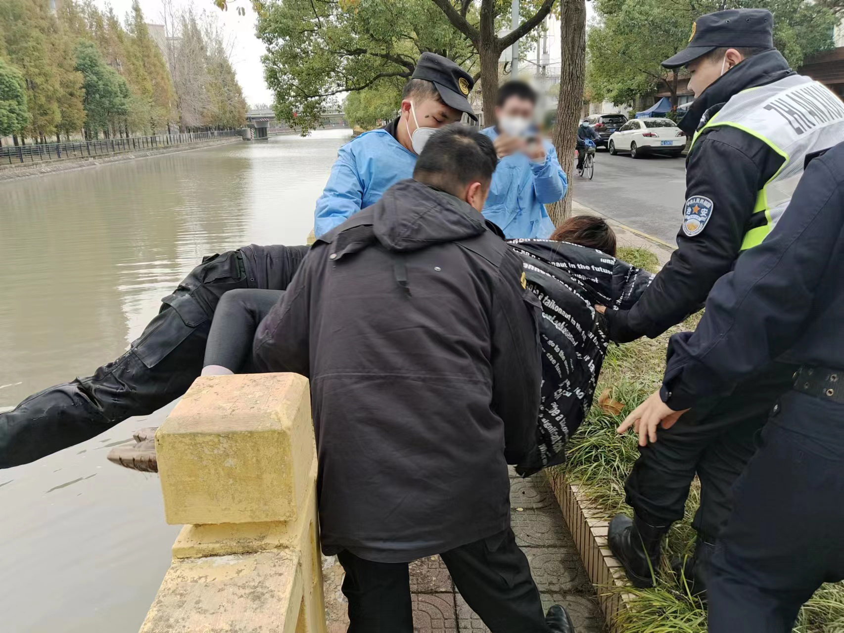 冬日的河水冰冷襲人,剛從河里爬上來的朱路路,渾身濕透凍得瑟瑟發(fā)抖,已經(jīng)累得精疲力盡。幾名員工向趕到現(xiàn)場的民警說明情況后,隨即裹帶著朱路路離開,該女子則由民警進(jìn)行后續(xù)處理。
