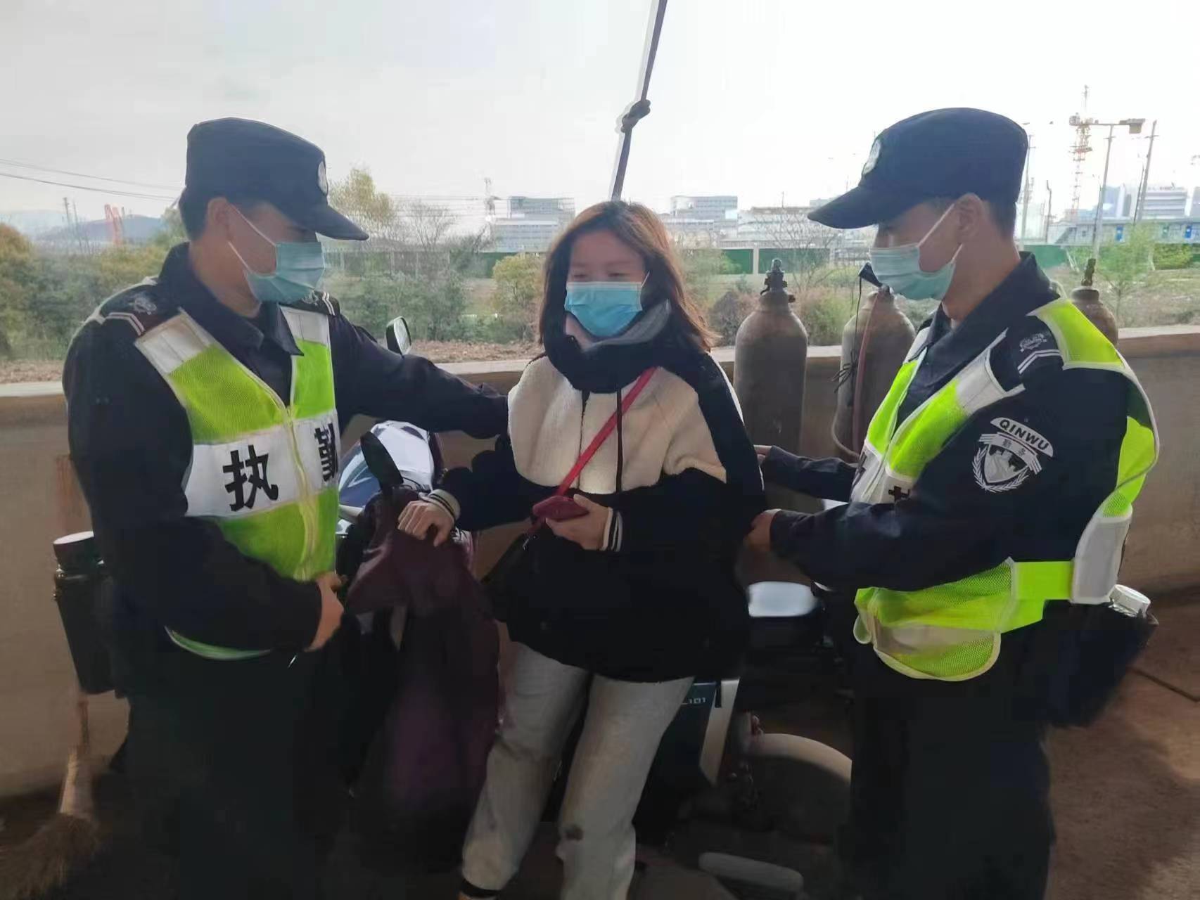 當日17:50,公司員工安畢富、鄭統(tǒng)和王明順在良渚街道疏港大道路段巡邏時,發(fā)現(xiàn)一名騎電動車的女子摔倒路邊,便急忙上前詢問女子傷勢情況。