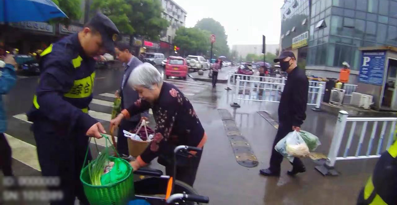 當(dāng)日7:50,公司員工李學(xué)江、姚迎寒和周銀浩在閑林街道文衛(wèi)路農(nóng)貿(mào)市場值勤時(shí),遇到一位老人求助,稱自己一早來菜場買菜,坐著輪椅走的時(shí)間太長了,左腿還患有嚴(yán)重的風(fēng)濕病,現(xiàn)在走不動(dòng)回不了家了。