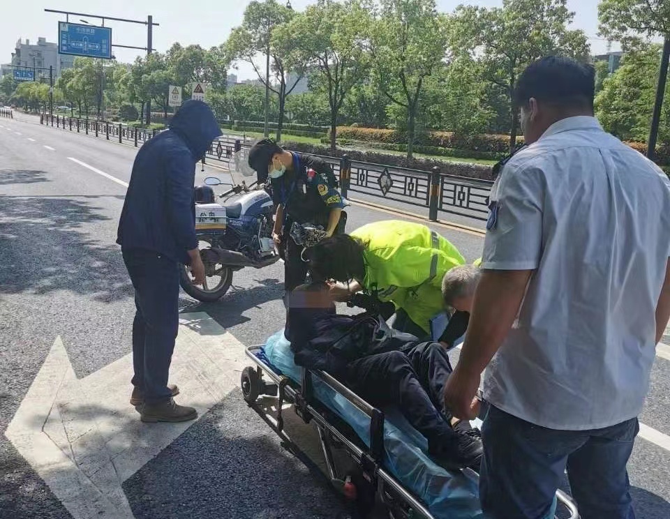 當(dāng)日14:00,公司員工周樂邦與派出所輔警楊應(yīng)平在通運(yùn)路巡邏時,看到馬路上躺著一位老人,便立即靠邊停車上前察看。老人左臉貼著地面,嘴角和左手腕處流著血。
