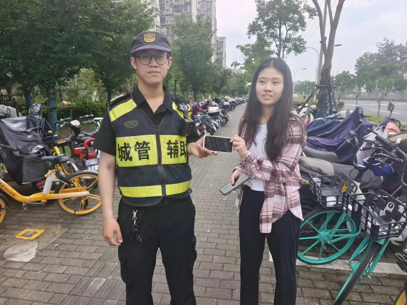 7月9日19:05,浙江民泰公司駐杭州市臨平區(qū)南苑市容項(xiàng)目員工楊飛在臨平地鐵站D口值勤時(shí),撿到一部蘋果14手機(jī),報(bào)告班組長(zhǎng)后便在原地等待。約過了30多分鐘,一女子前來現(xiàn)場(chǎng),來來回回察看,似乎在尋找什么東西。楊飛見狀主動(dòng)上前,詢問并確認(rèn)其是失主后,就把手機(jī)交還給了女子。女子拿著失而復(fù)得的手機(jī),十分高興,再三向民泰員工道謝。