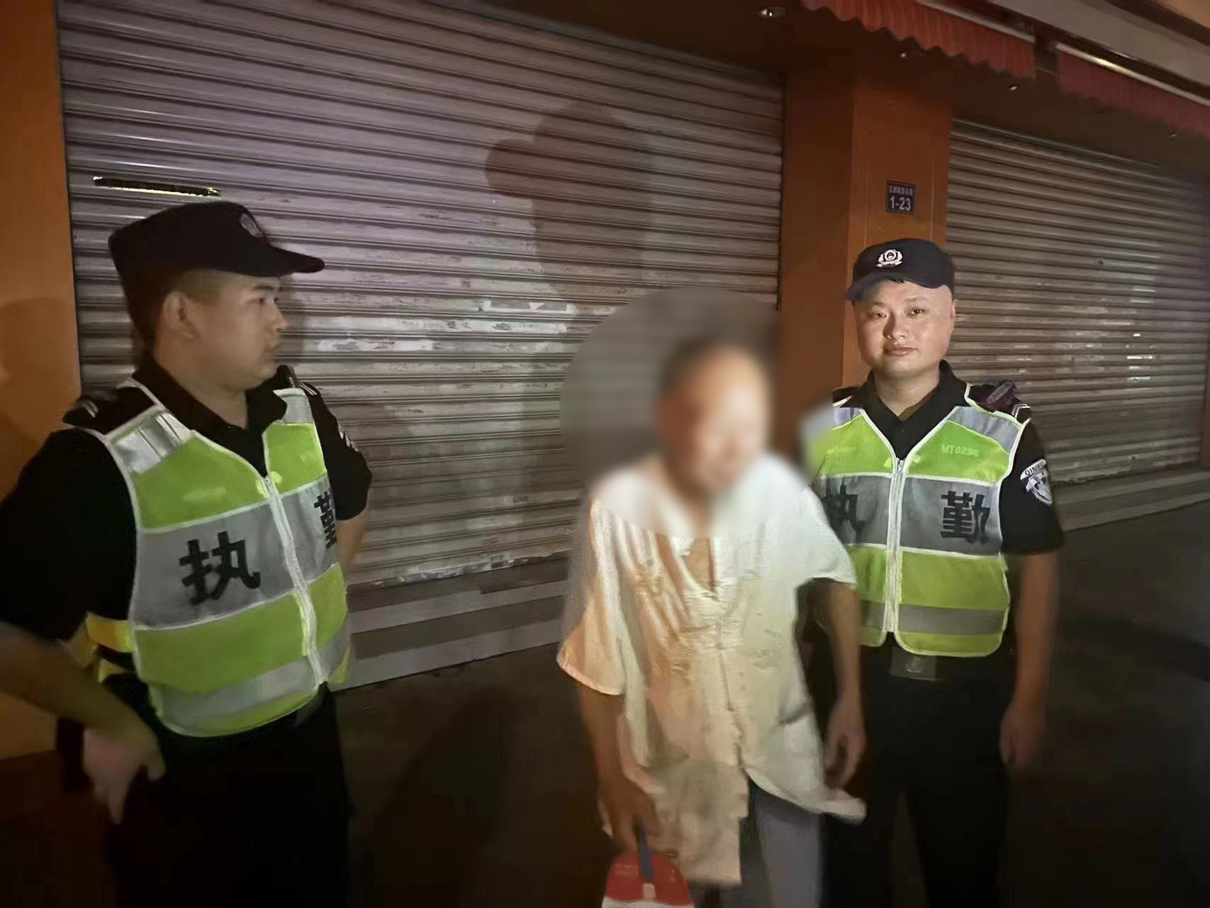 當(dāng)天23:00,公司員工劉偉和趙一浩在良渚街道十六街區(qū)巡邏時(shí),遇到市民張先生的求助,稱自己的老父親70多歲,患有老年癡呆癥,晚上八點(diǎn)多從家中獨(dú)自外出還未回家,家人都很著急,已經(jīng)在周邊找了1個(gè)多小時(shí)也沒有找到,麻煩看能不能幫忙找一找。