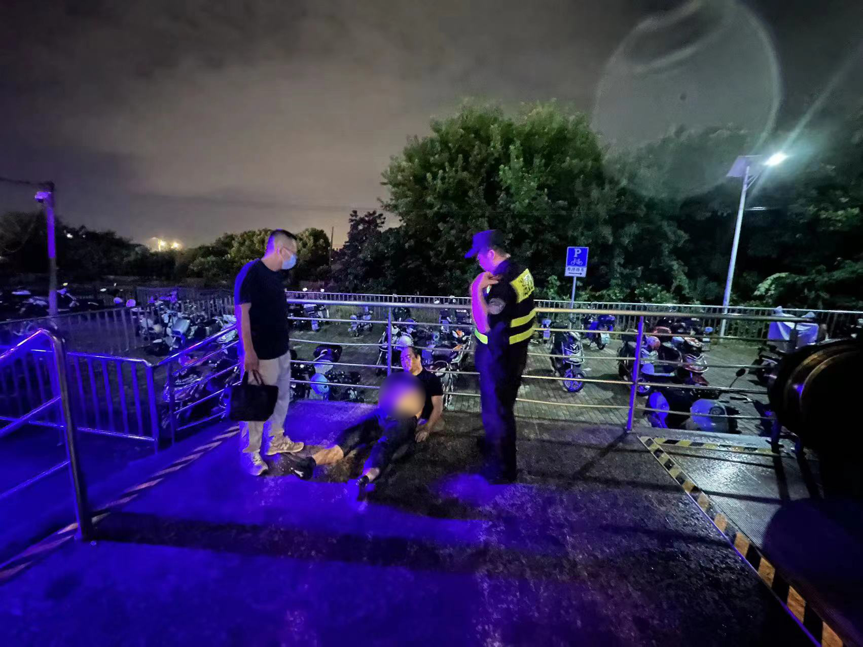 當(dāng)日20:30,公司員工王子宇和苗滿想巡查至航三路地鐵站附近時,發(fā)現(xiàn)一騎電瓶車的男子摔倒在路邊,幾位路人在一旁圍觀。