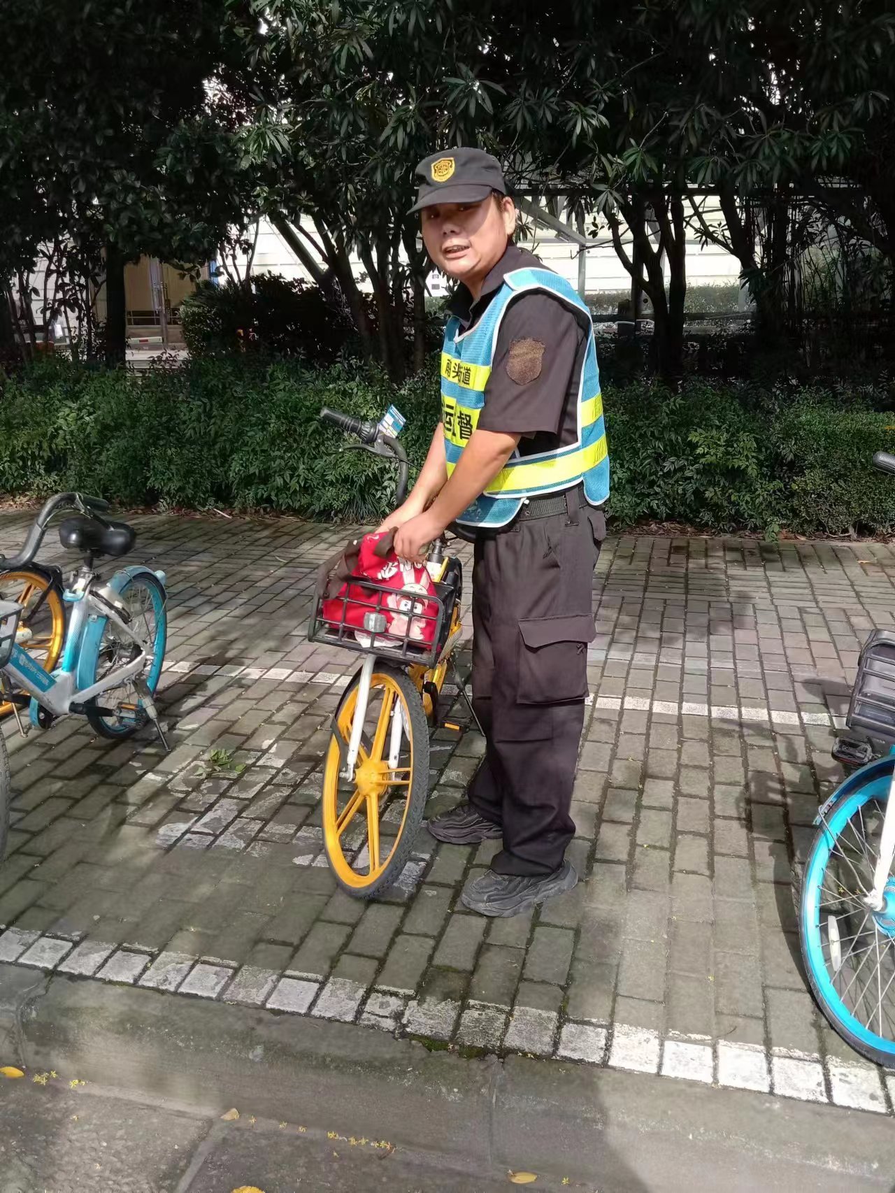 9月1日8:20,宗保公司駐浦東新區(qū)南碼頭市容項(xiàng)目員工楊召群在東方路東海證券大廈附近巡查時(shí),在一輛共享單車的車筐里發(fā)現(xiàn)一個(gè)紅色手提袋,內(nèi)有錢包、手機(jī)、身份證、銀行卡等物品??紤]到失主丟失貴重物品,可能會(huì)返回尋找,楊召群隨即將情況報(bào)告了公司項(xiàng)目副隊(duì)長(zhǎng),并按指示在原地等待。過了幾分鐘,一位女士打來電話,稱自己丟了一個(gè)紅色手提袋,里面裝著錢包、手機(jī)等物品。當(dāng)?shù)弥潜蛔诒9締T工撿到且被妥善保管后,女士很快趕到約定地點(diǎn)認(rèn)領(lǐng)。楊召群核實(shí)好女士身份信息,就將手提袋交還給了她。女士對(duì)楊召群連連道謝,還執(zhí)意發(fā)微信紅包表達(dá)謝意,被楊召群婉言謝絕了。