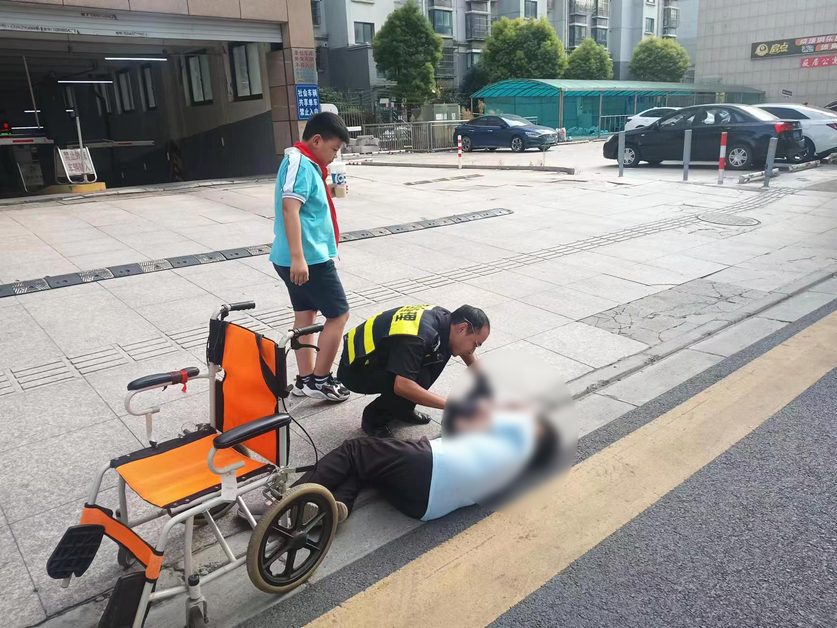 當(dāng)日15:20,公司員工徐雷在祝家港路附近巡查時(shí),看到一位老人躺在馬路邊,旁邊還有一輛輪椅。徐雷見(jiàn)此情形,趕緊跑上前詢問(wèn)。