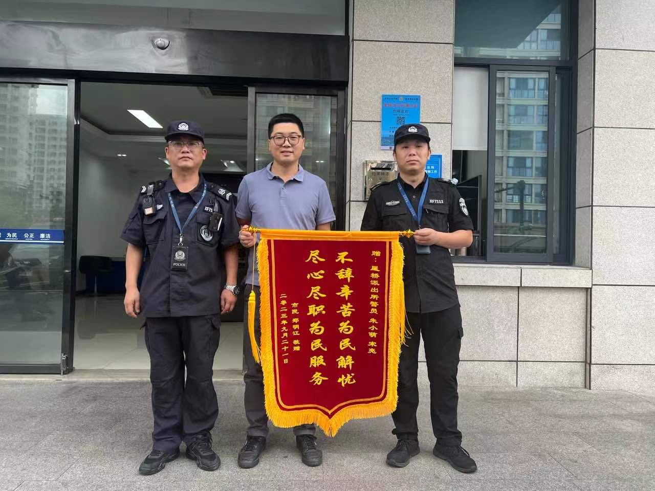9月21日,浙江民泰公司駐杭州市臨平區(qū)星橋派出所輔助項(xiàng)目員工收到市民鄭先生送來(lái)的繡有“不辭辛苦為民解憂 盡心盡職為民服務(wù)”的錦旗,感謝公司員工宋亮和朱小萌盡心為民幫助其找到了走失的母親。