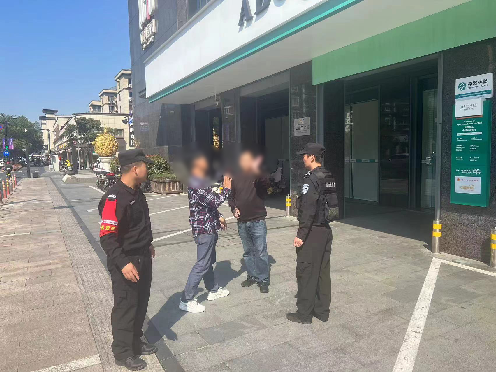 當(dāng)天11:50,公司員工安營鋒、袁良超和陳新駕駛巡邏車在臨平南站文正街和新豐路交叉口巡邏時(shí),發(fā)現(xiàn)兩名男子在路邊徘徊,不說話手又不停地比劃著,似乎很焦急。