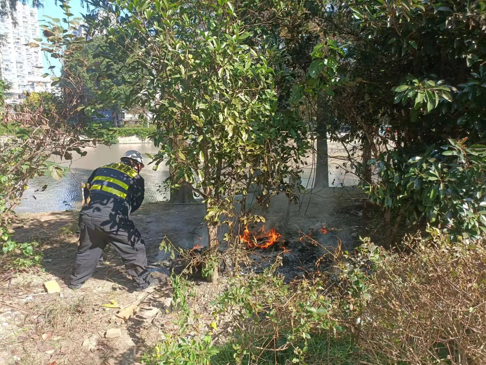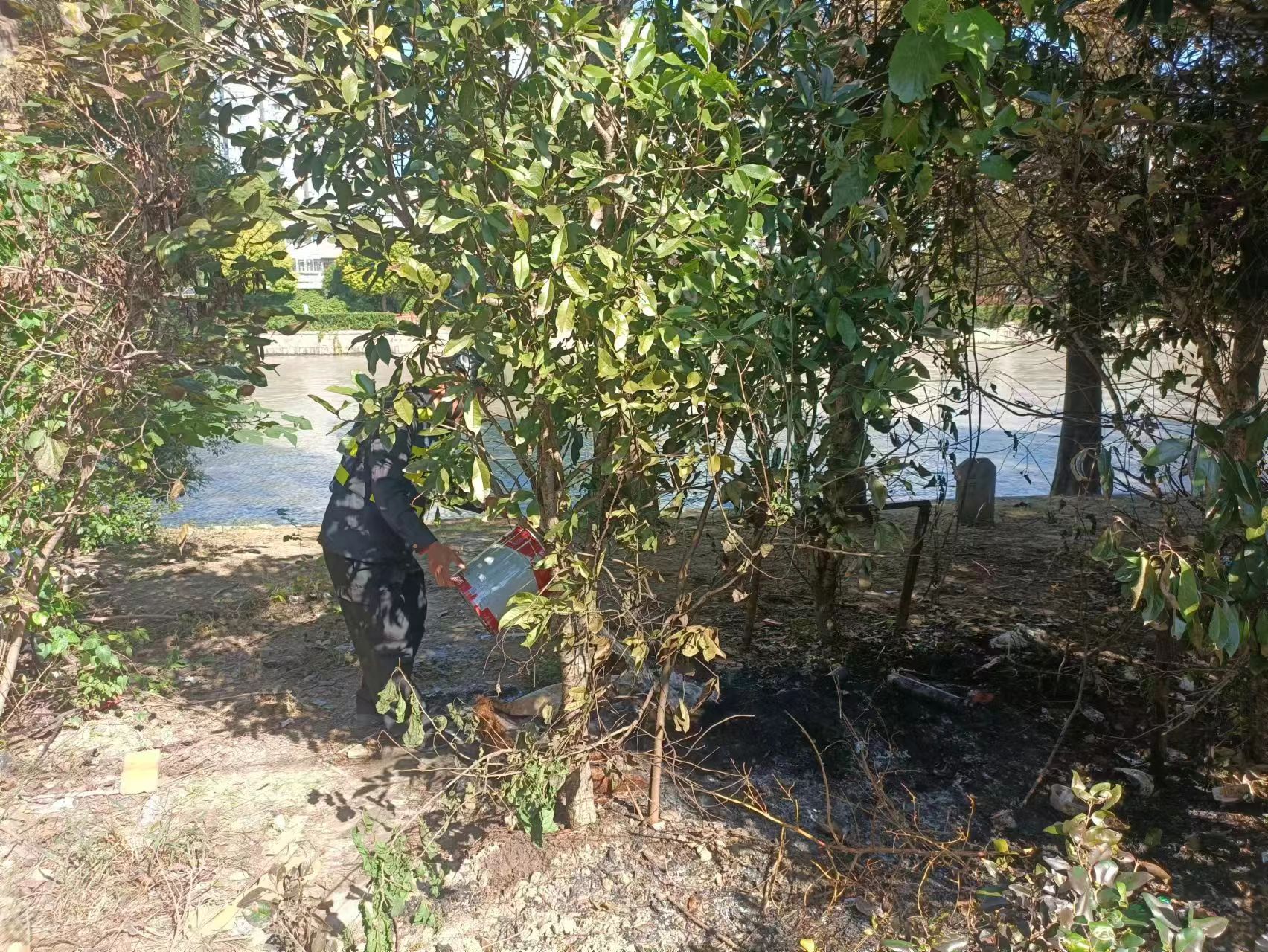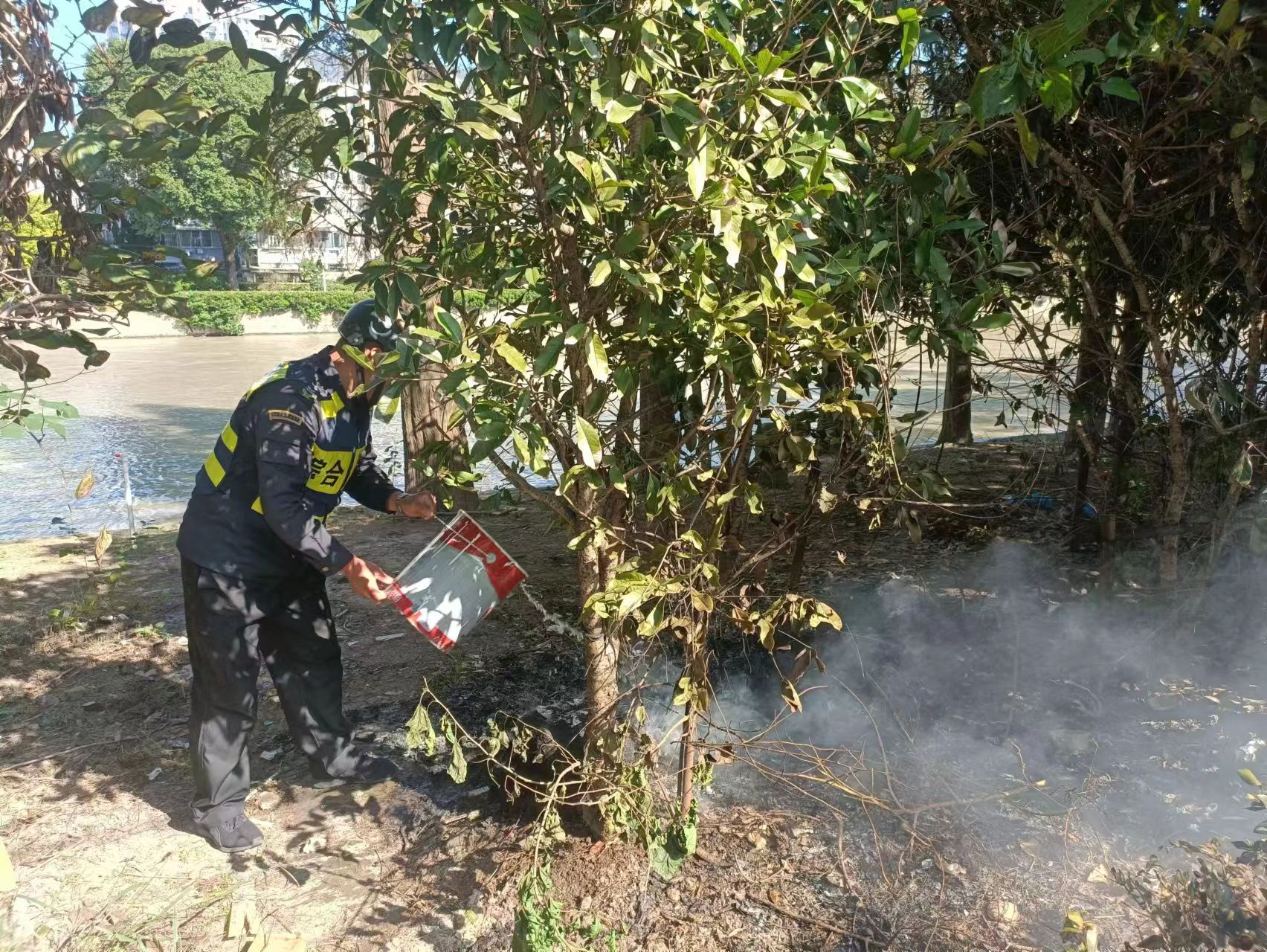 10月21日9:30,宗保公司駐浦東新區(qū)三林市容項(xiàng)目員工單野和趙樹寧在三林鎮(zhèn)楊新路小花園巡查時(shí),發(fā)現(xiàn)河邊雜草冒煙起火。兩人立即跑到附近居民家中,借來水桶提水滅火。經(jīng)過十幾分鐘的撲救,野火被撲滅,避免了火勢進(jìn)一步擴(kuò)大和蔓延。