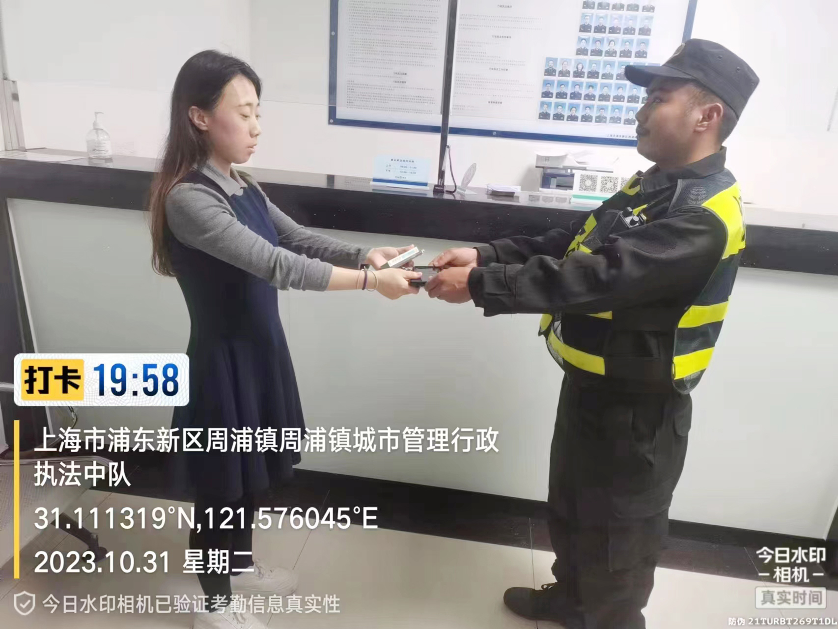 10月31日19:09,宗保公司駐浦東新區(qū)周浦市容項目員工袁代剛在年家浜路萬達廣場2號口巡查時,撿到一部華為手機,報告班組長后便在原地等待。大約過了20分鐘,仍不見失主來尋找,袁代剛就將手機送到了城管中隊。17:58,一女子打來電話詢問,隨后趕到城管中隊。袁代剛核實確認(rèn)女子是失主后,就將手機交還給了她。女子表示,原本想丟掉的手機就找不回來,現(xiàn)在被宗保員工撿到,不但交到了城管中隊,而且又交還給了自己,十分高興,再三向宗保員工袁代剛表示感謝。