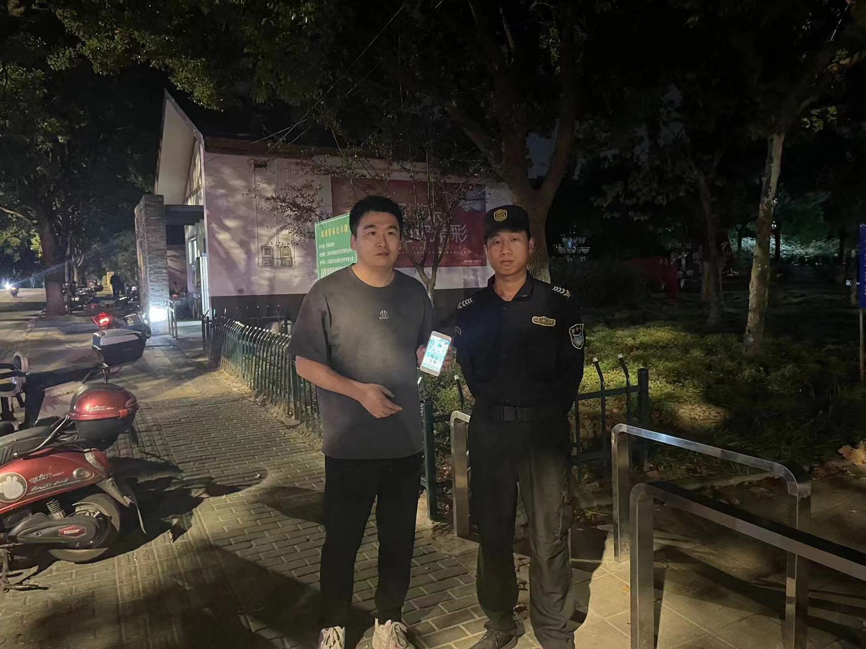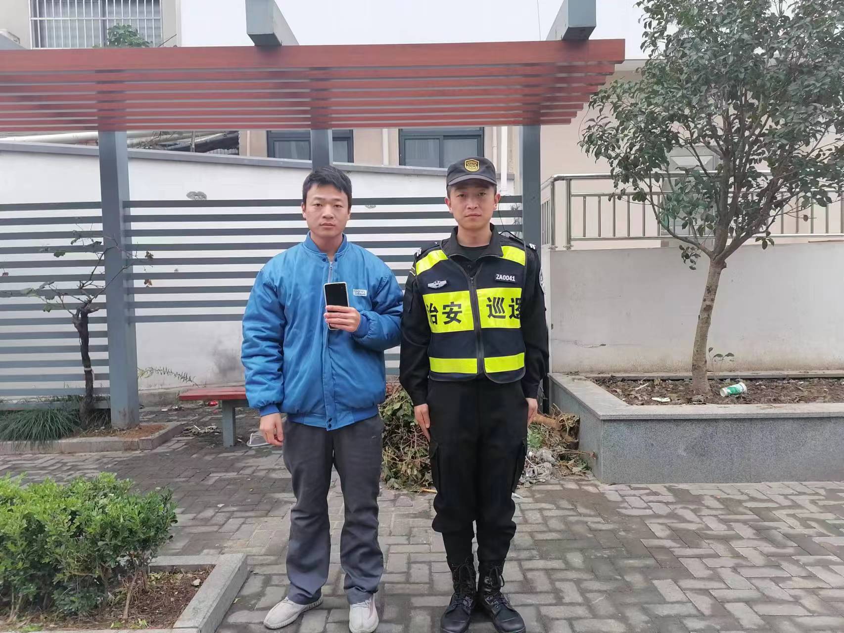 11月11日7:38,宗保公司駐浦東新區(qū)周東派出所輔助項目員工胡俊濤在周浦鎮(zhèn)建設(shè)路振興路口巡邏時,在路邊的垃圾箱上面撿到一部vivo手機,詢問周圍人員無果后,便在原地等待失主。等了1個小時左右,一男子打來電話尋找手機,胡俊濤告知了男子碰面的地點。不一會兒,一位騎著電動車的男子趕到約定地點。胡俊濤核實確認(rèn)該男子是失主后,就將手機交還給了他。男子拿著手機,再三向宗保員工胡俊濤道謝。