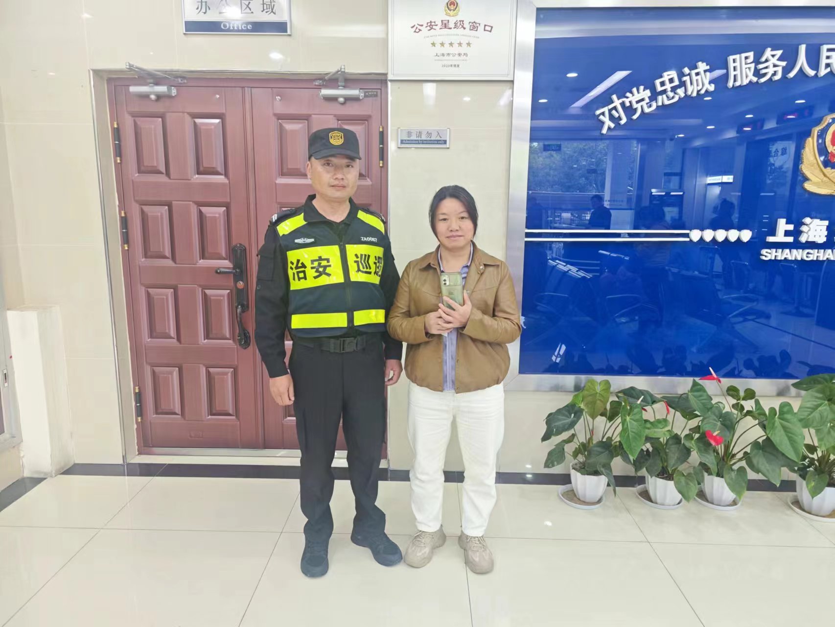 11月3日14:41,宗保公司駐閔行區(qū)莘莊工業(yè)園項目員工單海慢在聯(lián)農(nóng)路七寶中學(xué)鑫都實驗中學(xué)附近值勤時,撿到一部華為手機,隨即報告了項目負(fù)責(zé)人并在原地等待。約過了20多分鐘,一女子打來電話尋找手機,語氣顯得很急切,但得知手機是被宗保公司員工撿到妥善保管后,十分高興,連連說“放心了,放心了......”。不一會兒,一位身穿藍色襯衫的女子來到約定地點認(rèn)領(lǐng)手機,現(xiàn)場確認(rèn)其是失主后,單海慢將手機交還給了她。女子拿著失而復(fù)得的手機,頻頻向公司員工單海慢表示感謝。