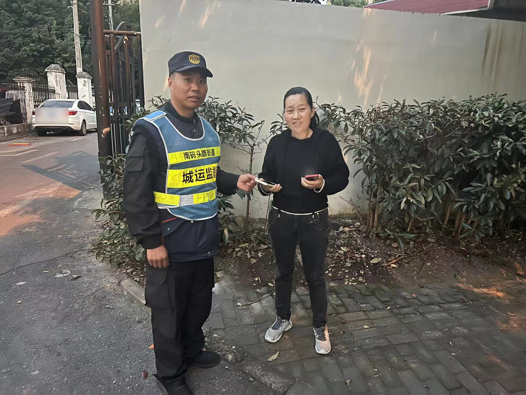 11月22日16:25,宗保公司駐浦東新區(qū)南碼頭網(wǎng)格項(xiàng)目員工徐寶輝在高科西路浦三路巡邏時(shí),撿到一部白色蘋果13手機(jī),隨即報(bào)告了帶班組長(zhǎng),并按指示邊巡邏邊等待失主聯(lián)系。不一會(huì)兒,一位女士打來電話,語氣顯得非常著急。徐寶輝一邊安慰女士,一邊與她約好碰面時(shí)間地點(diǎn)。很快,一位身穿黑衣的女士趕到現(xiàn)場(chǎng),核實(shí)確認(rèn)該女士是失主后,徐寶輝就將手機(jī)交還給了她。為表示感謝女士要發(fā)微信紅包給徐寶輝,被他婉言謝絕了。