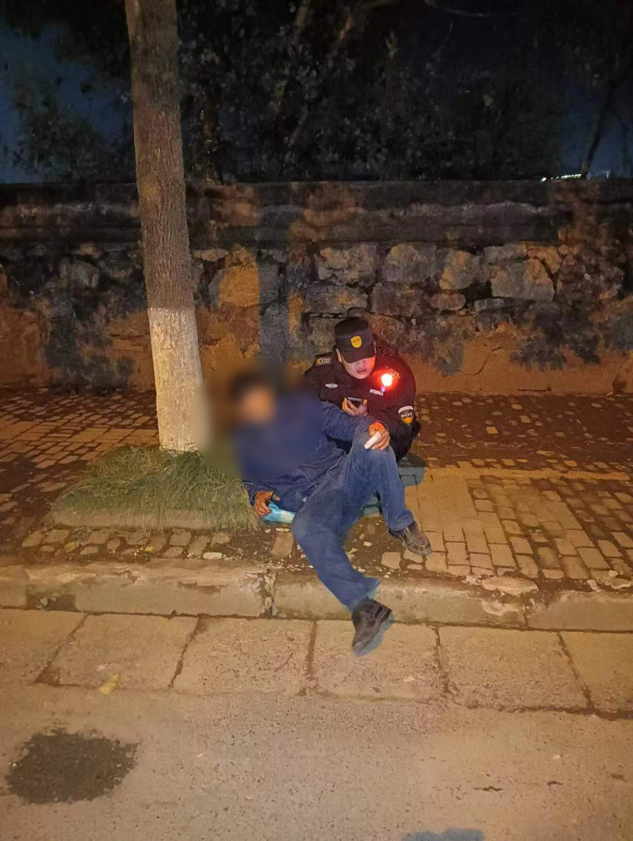 當(dāng)日19:00,公司員工馮奧、楊顯峰和周健在閑興路10號附近巡查時(shí),發(fā)現(xiàn)一男子躺在路邊,便趕緊上前察看。男子蜷縮著身體,雙手按壓著腹部,表情顯得十分痛苦。