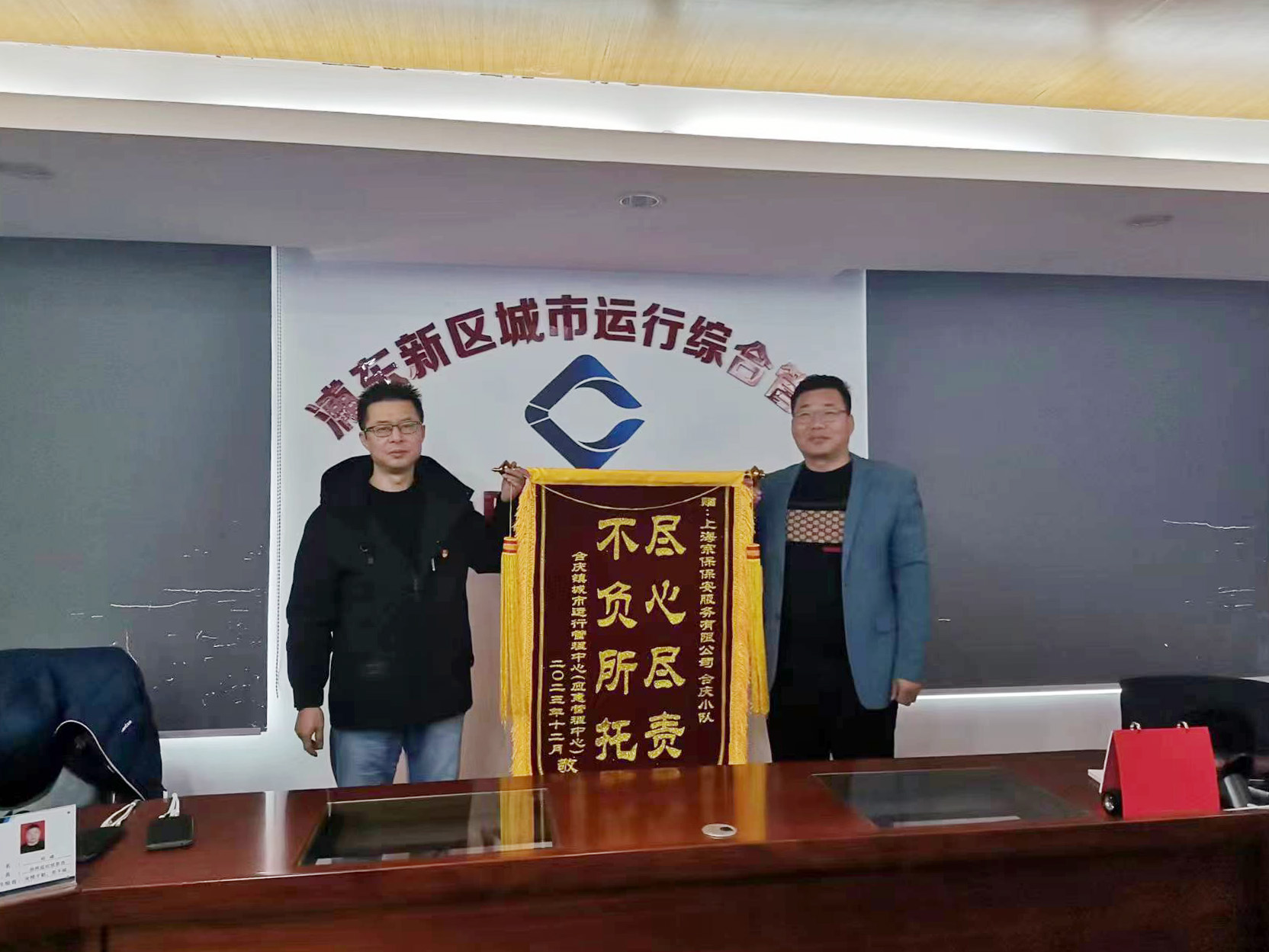 12月30日,浦東新區(qū)合慶鎮(zhèn)城市運(yùn)行管理中心主任奚志榮將一面繡有“盡職盡責(zé) 不負(fù)所托”的錦旗送到公司駐合慶鎮(zhèn)城運(yùn)中心項(xiàng)目,感謝公司對(duì)鎮(zhèn)城運(yùn)中心工作的大力支持和配合,贊揚(yáng)公司在協(xié)助做好日常安全巡邏、核查處理網(wǎng)格工單、進(jìn)行防臺(tái)防汛等應(yīng)急處置中的突出表現(xiàn)。