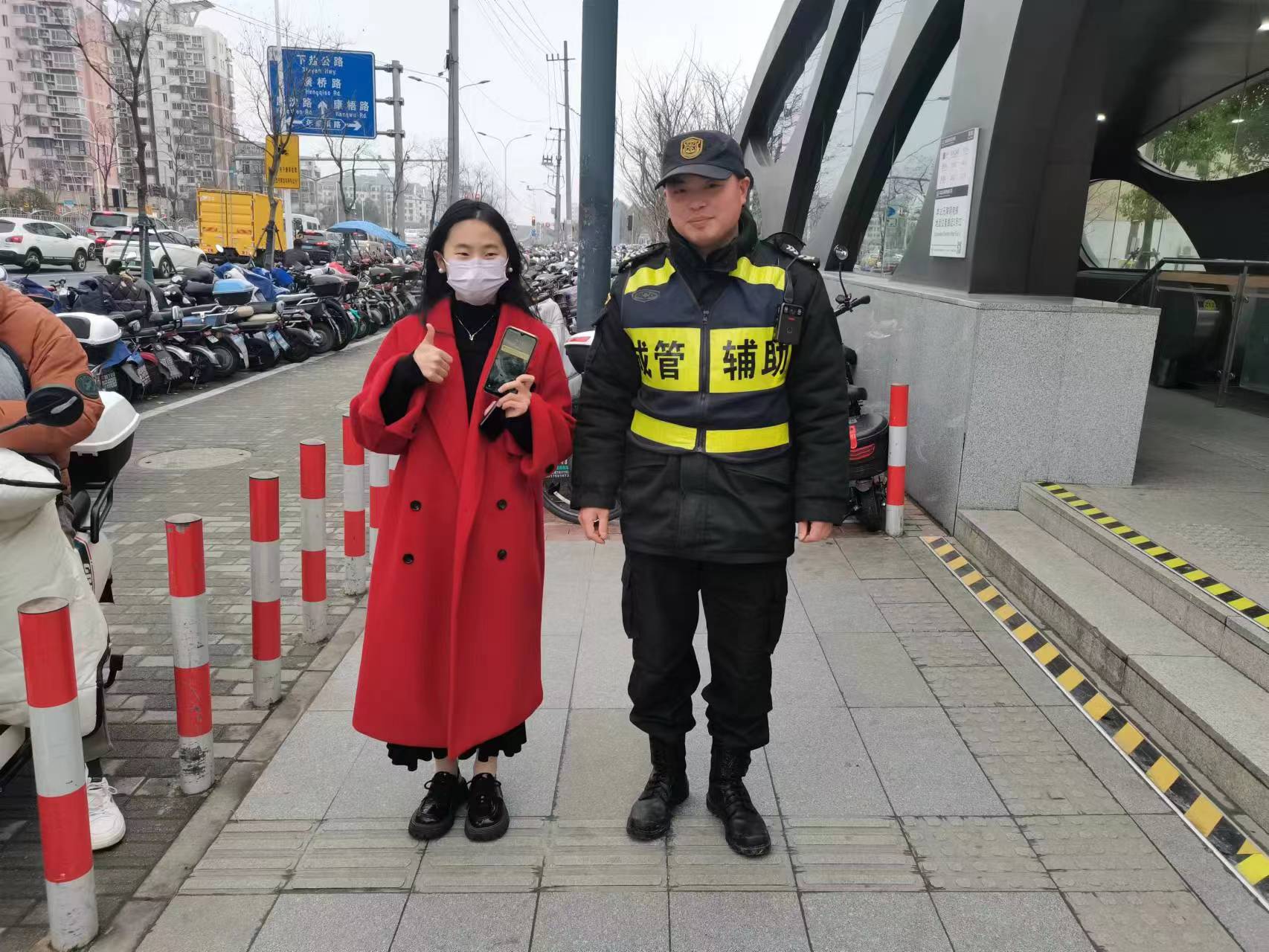 1月18日21:05,宗保公司駐浦東新區(qū)康橋市容項目員工蘇照義巡查至18號線滬南路地鐵站5號口時,撿到一部灰色華為手機(jī)??紤]到失主可能會返回尋找,便在原地等待。過了30分鐘左右,一女子打來微信電話尋找手機(jī),語氣顯得非常急切。蘇照義一邊表明身份安慰她,一邊與她約好碰面時間地點。1月19日14:30,一位身穿紅色上衣的女子趕來認(rèn)領(lǐng)手機(jī),解鎖手機(jī)鎖屏密碼后,蘇照義就將手機(jī)交還給了她。 女子拿著失而復(fù)得的手機(jī),連連向公司員工蘇照義表示感謝。
