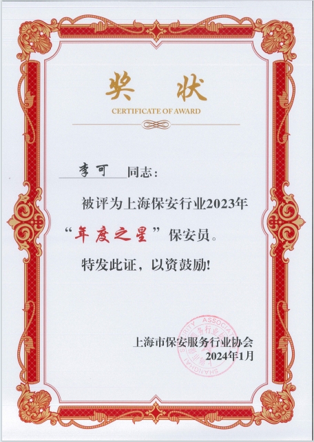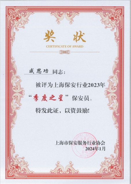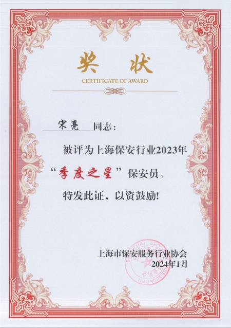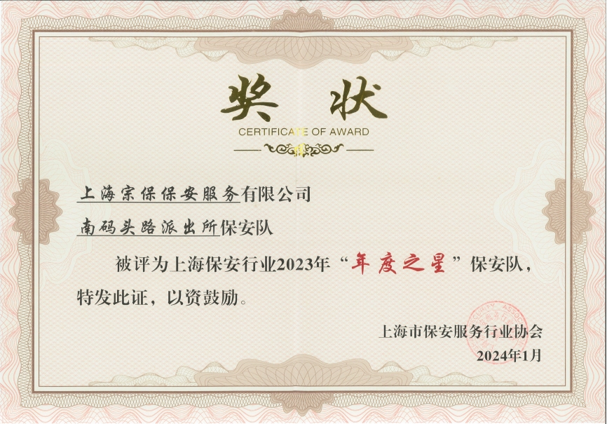 近日,上海市保安服務(wù)行業(yè)協(xié)會公布了2023年“年度之星”和第四季度“季度之星”評選結(jié)果,上海宗保保安服務(wù)有限公司3個保安隊和3名員工分獲殊榮。