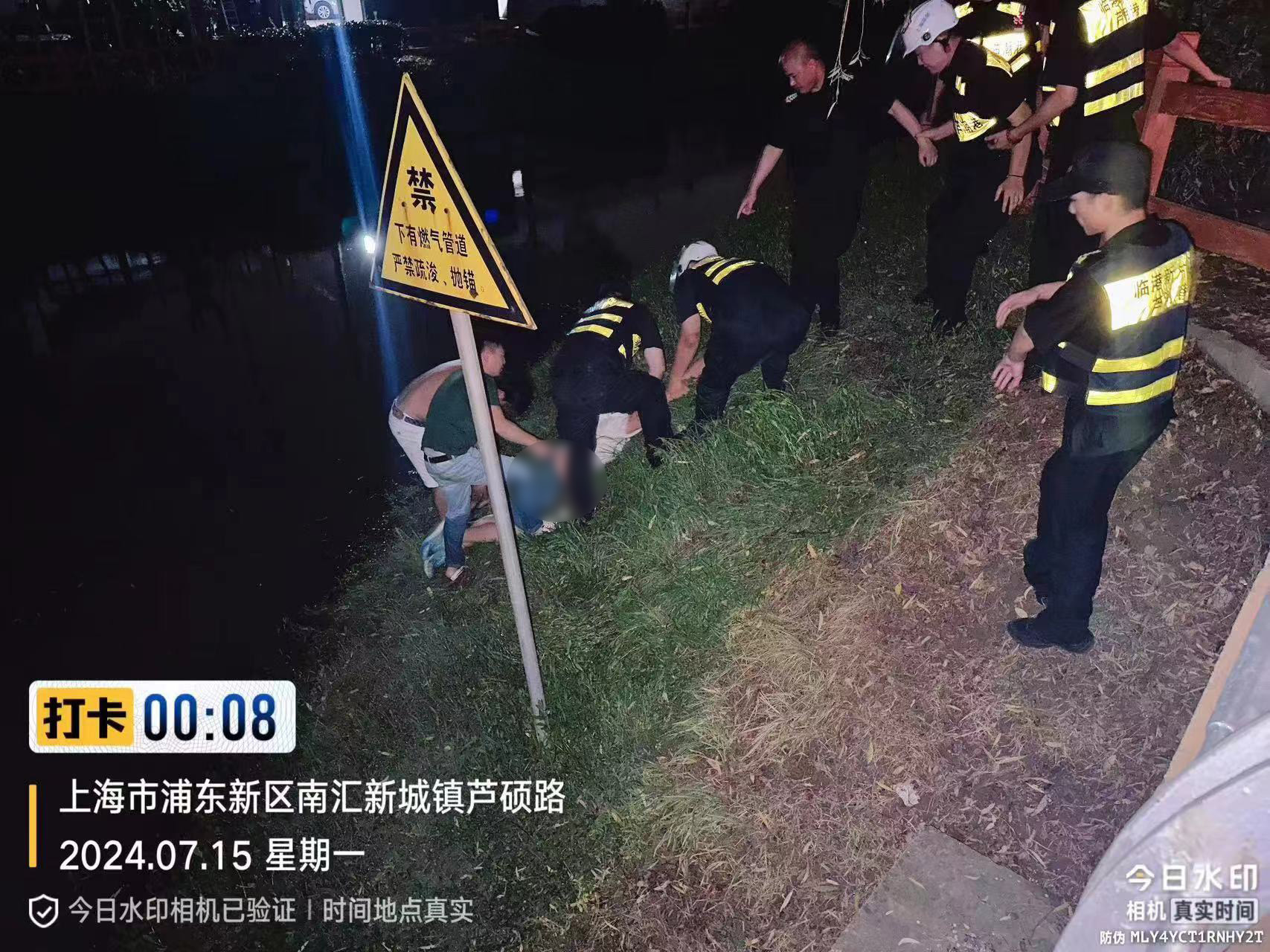 7月14日零時(shí),宗保公司員工管旭峰駕駛巡邏車經(jīng)過蘆碩路出潮樂路東約100米時(shí),發(fā)現(xiàn)多人在河道邊發(fā)生爭(zhēng)執(zhí)。正欲上前詢問情況時(shí),一名男孩突然跳入河中,情況緊急,管旭鋒立即用對(duì)講機(jī)呼叫附近巡邏同事前來支援。