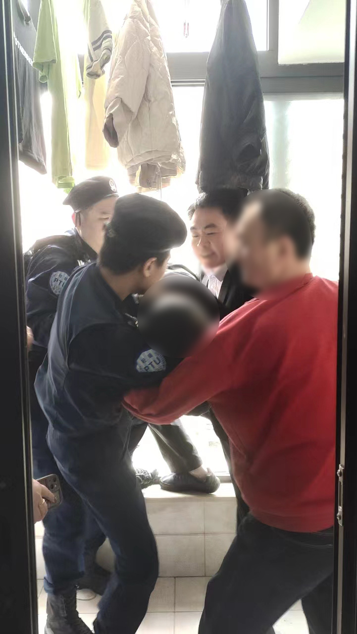 凌邵凱和李梟琦很快趕到事發(fā)小區(qū)樓下,發(fā)現(xiàn)一名女子趴在12樓陽(yáng)臺(tái)上,一只腳已經(jīng)懸空,一名男子正拉著她的雙手,似乎還在爭(zhēng)執(zhí)著什么。兩人見狀,快速跑到12樓,使勁地敲門卻一直沒人開門,防盜門堅(jiān)固又一時(shí)難以破門而入。