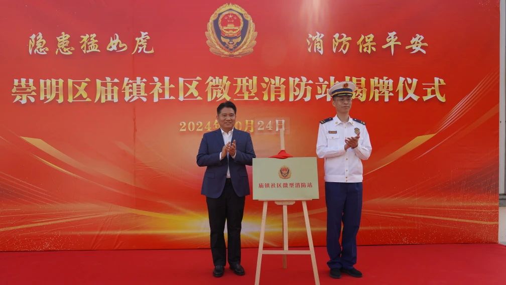 10月24日上午,崇明區(qū)廟鎮(zhèn)社區(qū)微型消防站舉行揭牌儀式,宗保公司作為配合建設(shè)單位參加揭牌儀式。廟鎮(zhèn)黨委書記陳建飛、崇明區(qū)消防支隊(duì)支隊(duì)長車斌共同為消防站揭牌。