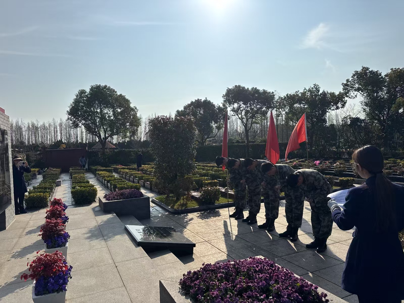 公司志愿服務(wù)隊隊員們懷著崇敬之情,來到高橋烈士陵園、南匯革命烈士紀念園、三林烈士陵園等墓地,開展祭掃志愿服務(wù)活動。他們每到一處烈士紀念設(shè)施,先是敬讀碑文敬獻鮮花、神情肅穆鞠躬默哀,瞻仰先烈的豐功偉績。