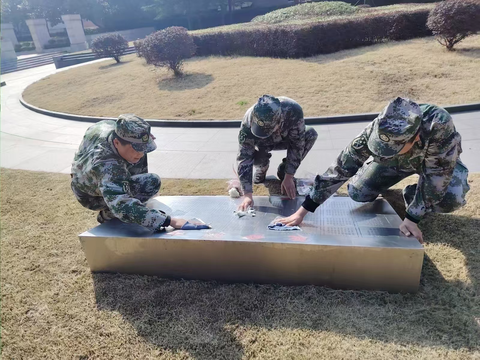 隨后,隊員們便分組對陵園內(nèi)的烈士墓碑、紀念設(shè)施進行細致擦拭。他們清除墓地野草,清理墓旁枯葉,清掃碑前雜物,以實際行動守護莊嚴肅穆的烈士長眠之地,弘揚雷鋒精神,踐行社會責任,傳遞積極向上的社會正能量。