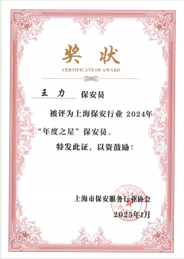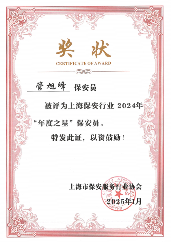 公司員工管旭峰、王力被評為“年度之星”保安員