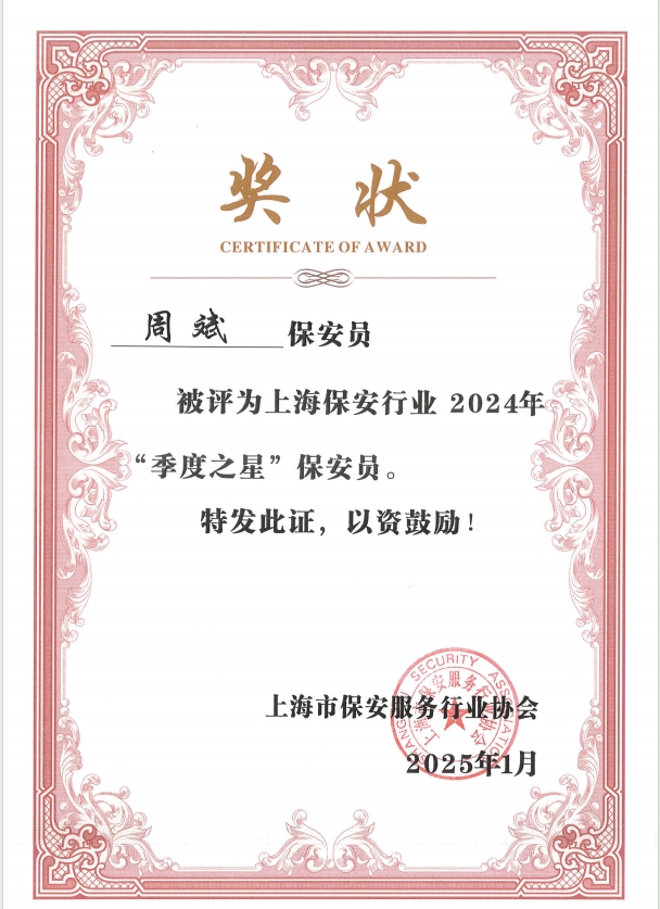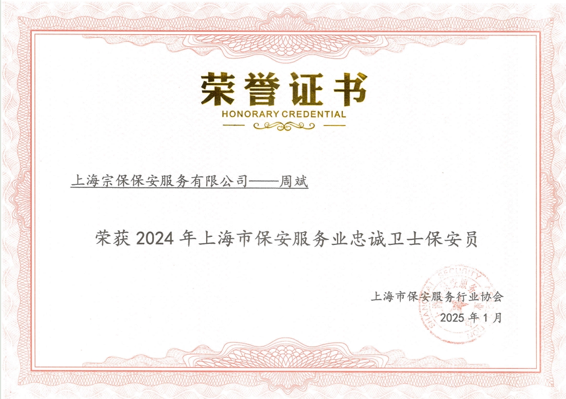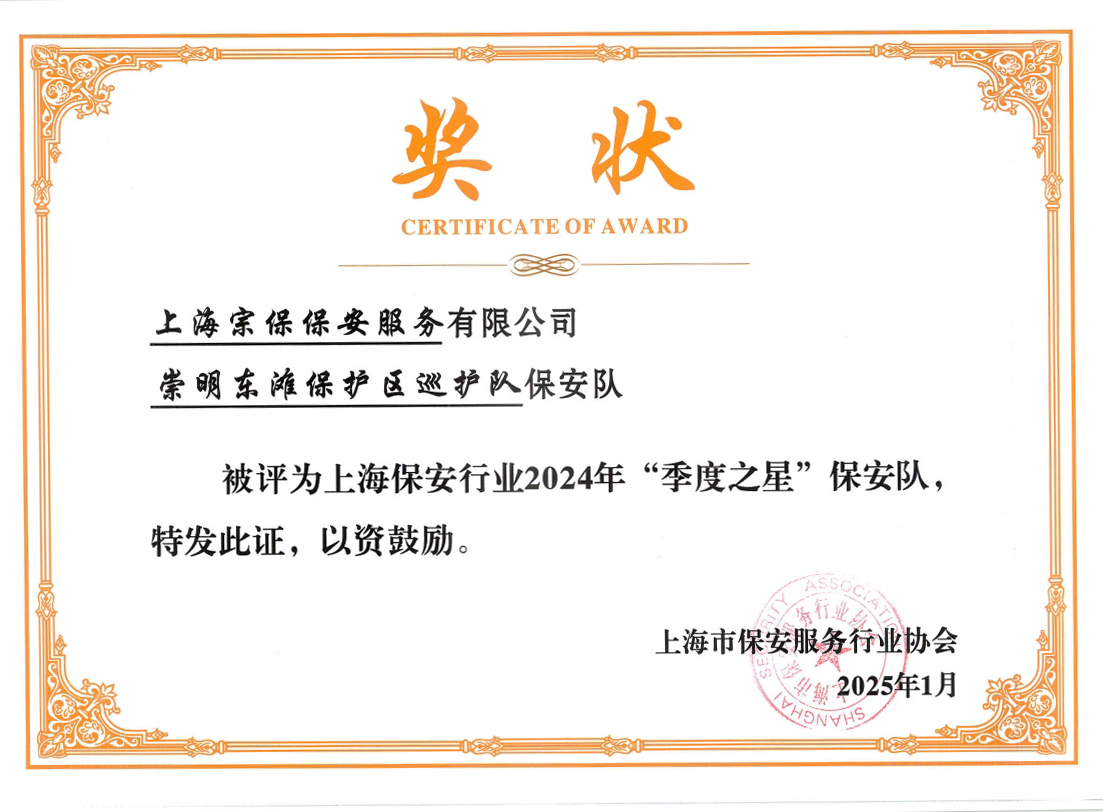 近日,上海市保安服務行業(yè)協(xié)會公布了“忠誠衛(wèi)士”保安員、“年度之星”保安隊、“季度之星”保安隊、“年度之星”保安員評選結(jié)果,宗保公司2個項目保安隊和3名員工個人獲得殊榮。