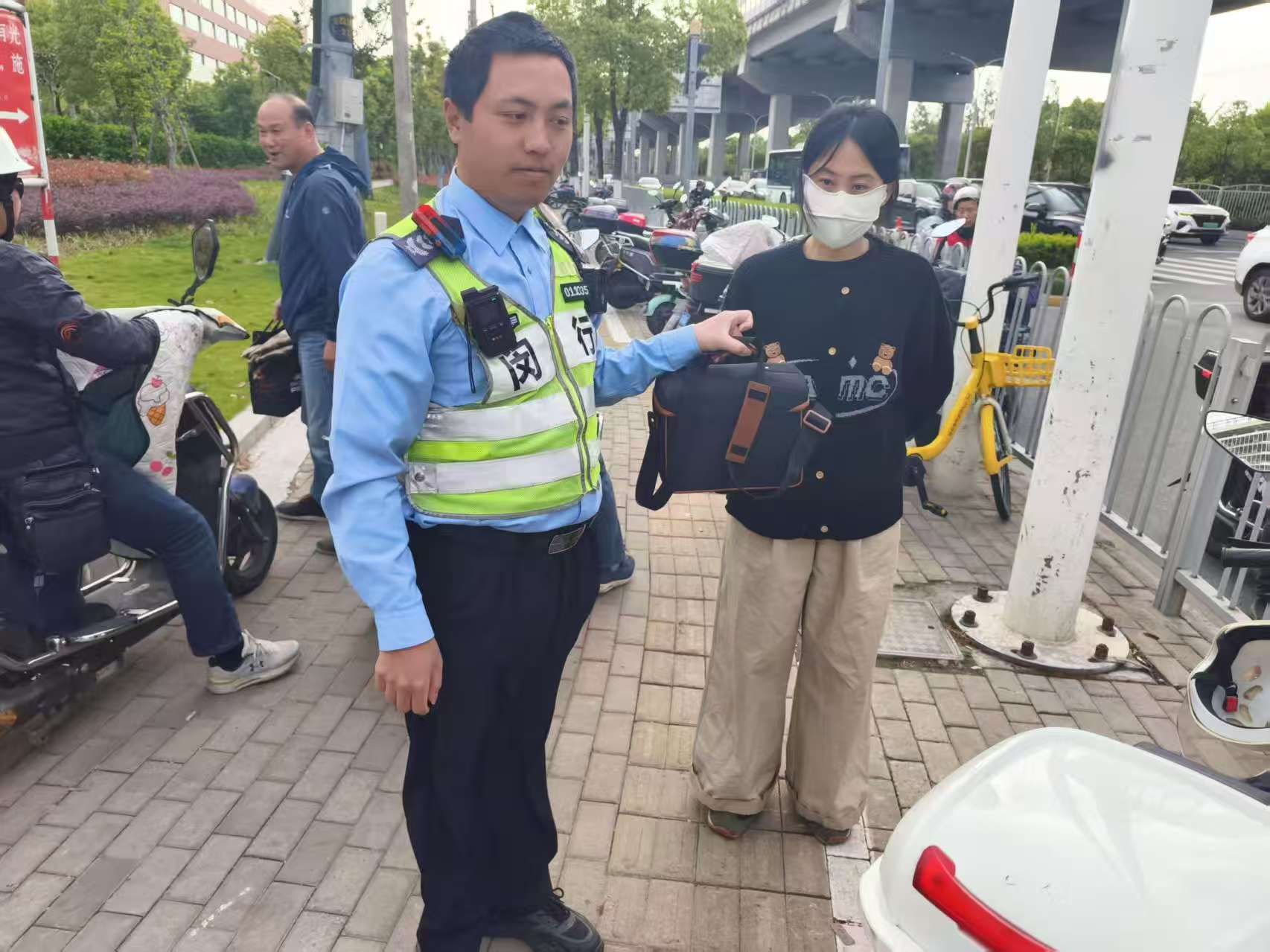 宗保公司駐浦東新區(qū)書院交管輔助項(xiàng)目員工撿到背包歸還失主