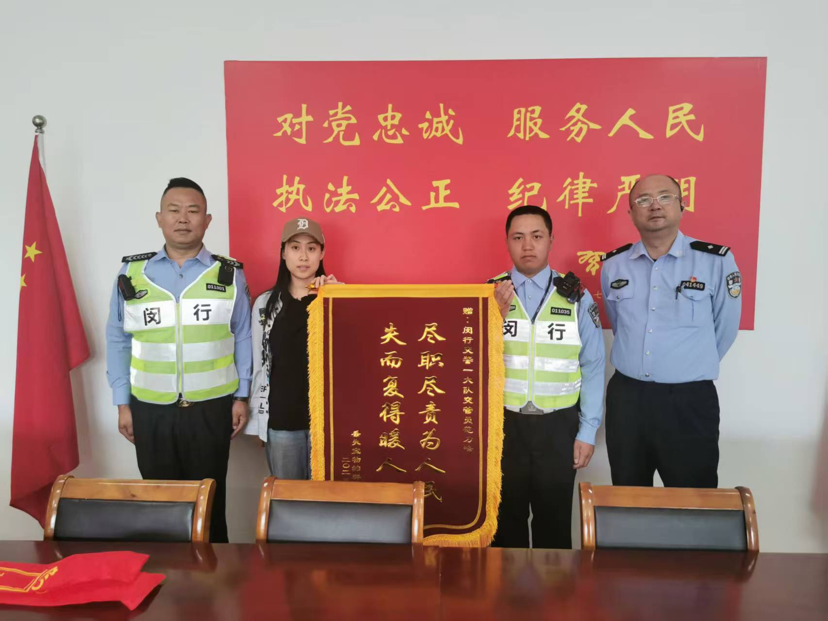 5月12日,女子特意送來一面繡有“盡職盡責(zé)為人民 失而復(fù)得暖人心”的錦旗以示感謝。