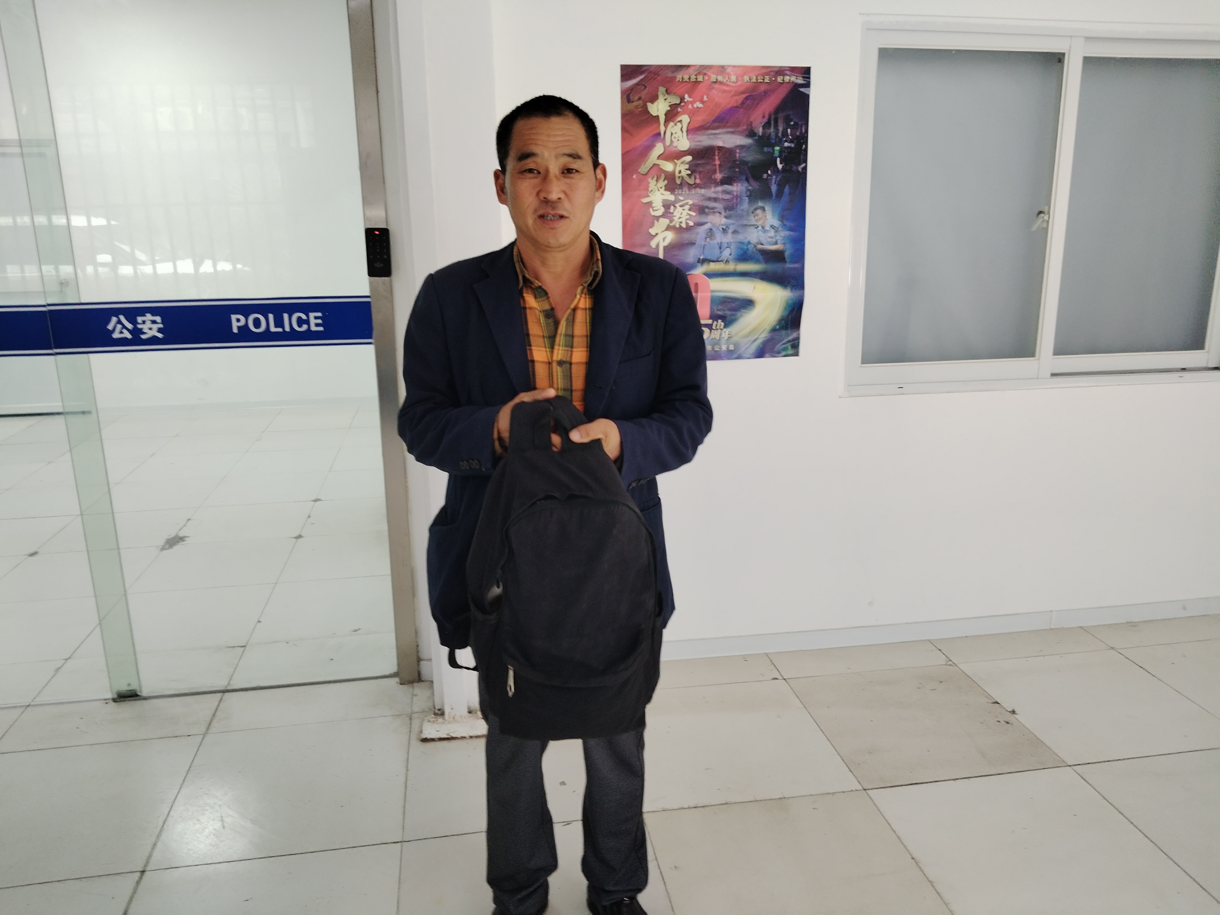 等了許久,一直無人前來尋找,樊斌就將背包上交至巡邏民警。很快,民警通過身份證信息聯(lián)系上失主,并與其約定好碰面時(shí)間地點(diǎn)。