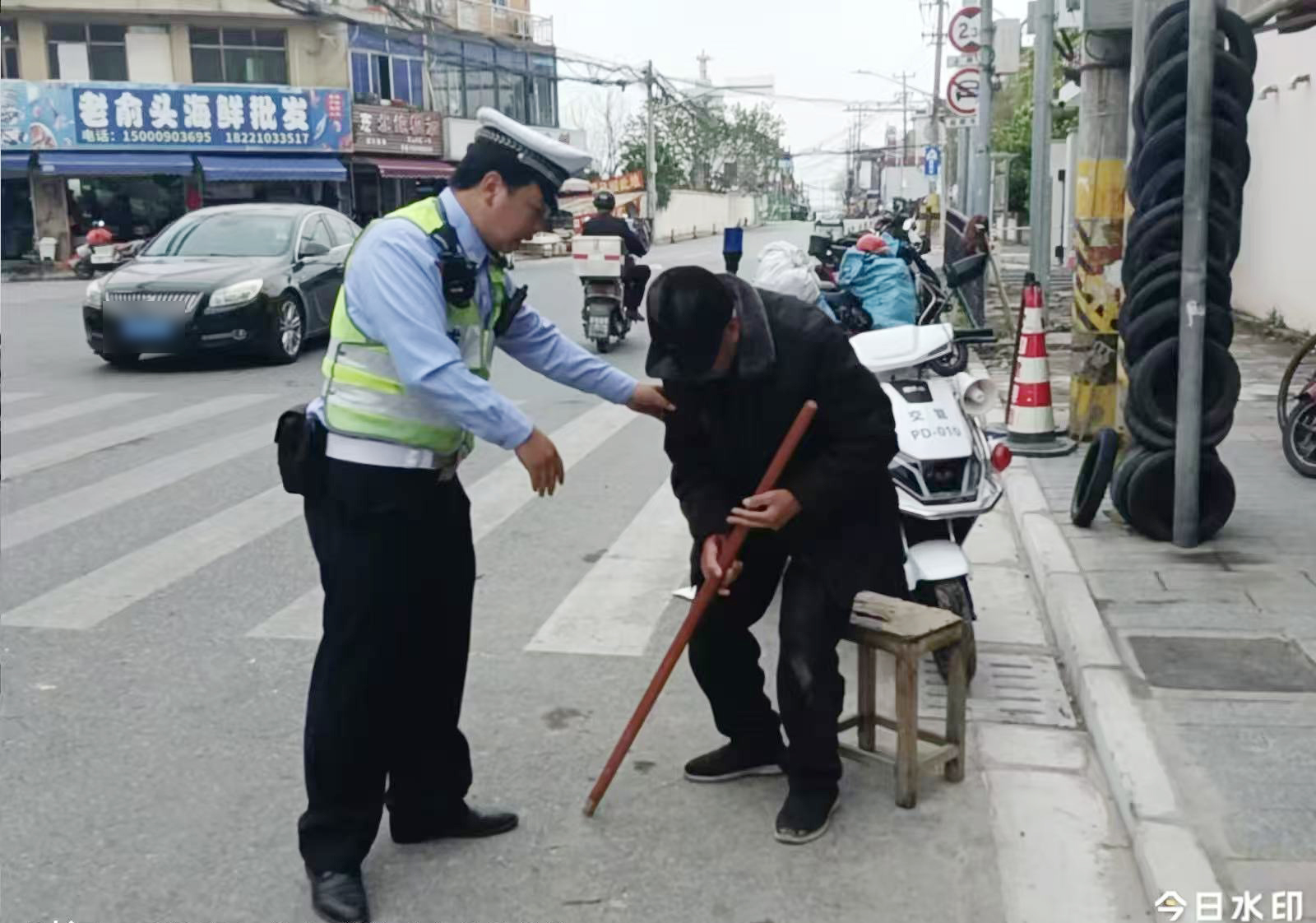 當(dāng)日14時(shí)28分,張宇航和馮飛巡邏至漁港路綠蔭路時(shí),發(fā)現(xiàn)一位老人摔倒在路邊,就趕緊上前察看,老人臉部、手部均有出血,表情痛苦。詢問得知老人因不慎摔倒受傷,希望聯(lián)系家人。此時(shí),一位熱心路人表示認(rèn)識(shí)老人家屬,并主動(dòng)撥打電話通知其家人。張宇航與家屬約定好見面地點(diǎn)后,便耐心守候在老人身旁。