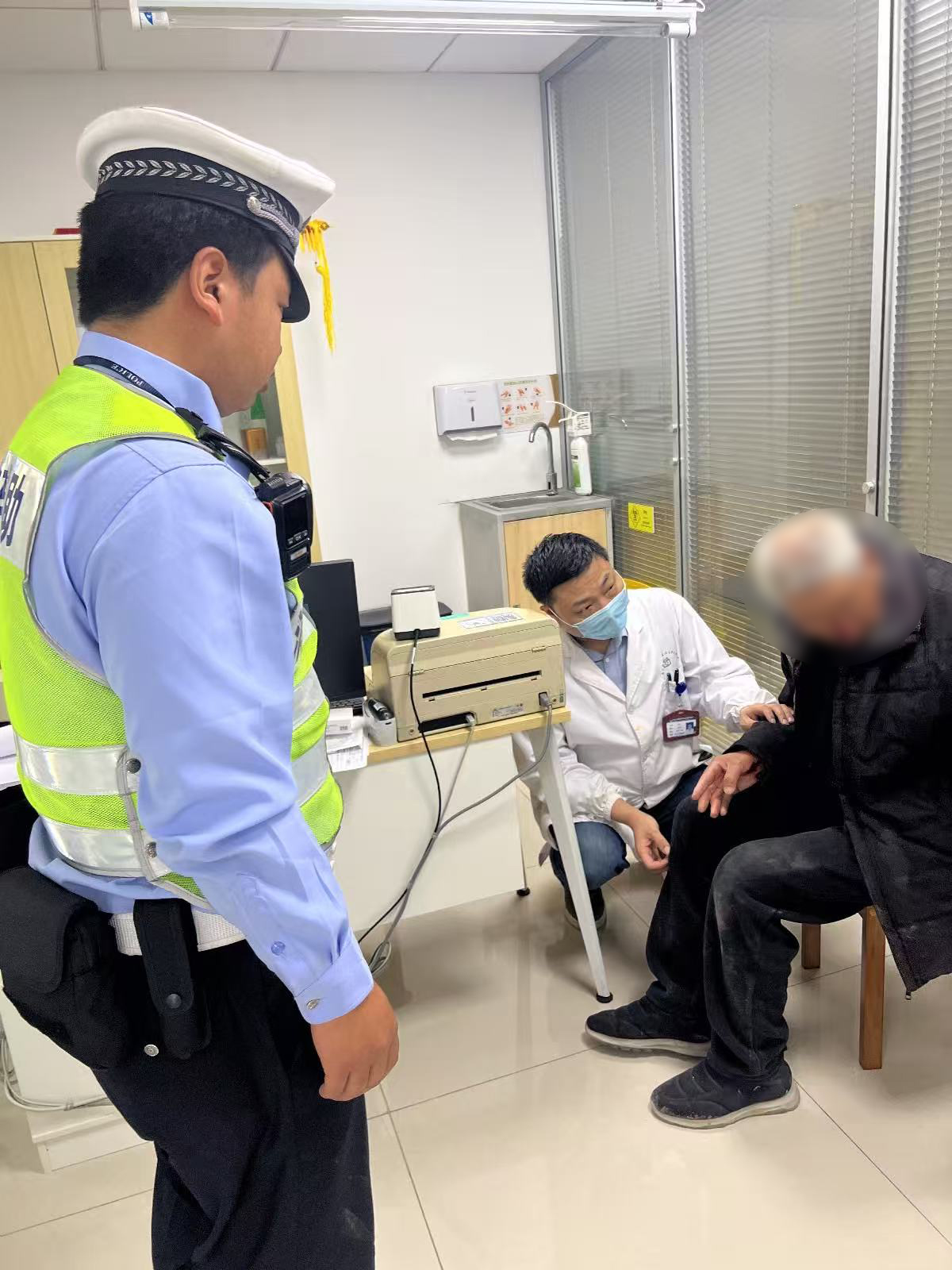 在等待過程中,老人因疼痛難忍,身體不停顫抖。考慮到情況緊急,張宇航當(dāng)機(jī)立斷,決定先行護(hù)送老人前往社區(qū)醫(yī)院救治,而馮飛則留在原地等待家屬,確保能及時(shí)對接。