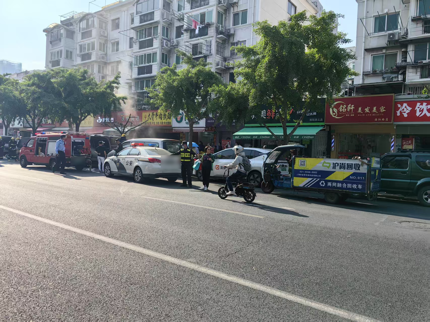 在等待消防救援的過(guò)程中,迅速趕到的同事們分工協(xié)作,一方面在現(xiàn)場(chǎng)引導(dǎo)車輛有序通行,確保道路暢通;另一方面積極疏散圍觀群眾,維持現(xiàn)場(chǎng)秩序,為消防救援車輛開辟出綠色通道。