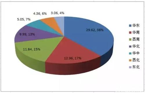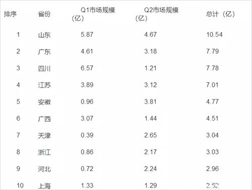 從市場區(qū)域來看,2018年上半年,我國城市智能交通千萬項目市場主要集中在我國華東地區(qū)(如圖2所示)。市場區(qū)域排在前十的省及直轄市依次包括山東、廣東、四川、江蘇、安徽、廣西、天津、浙江、河北、上海,其中華東地區(qū)就有5個省及直轄市入榜,前十市場區(qū)域中華東地區(qū)市場總計千萬項目數(shù)185項,市場規(guī)??傆嫾s28億,約占2018年上半年我國城市智能交通千萬項目市場規(guī)模的35.4%。