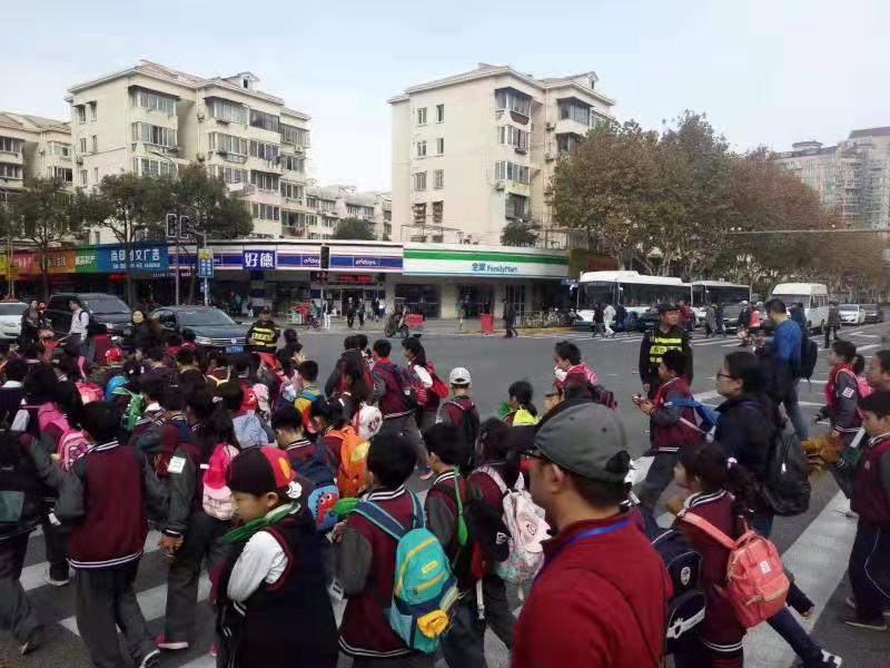 2018年11月30日14:20左右,在浦東新區(qū)福山路與張楊路路口有一道亮麗的風景線,宗保駐陸家嘴梅園市容的特保正在護送600名小朋友過馬路,那陣仗真是浩浩蕩蕩。