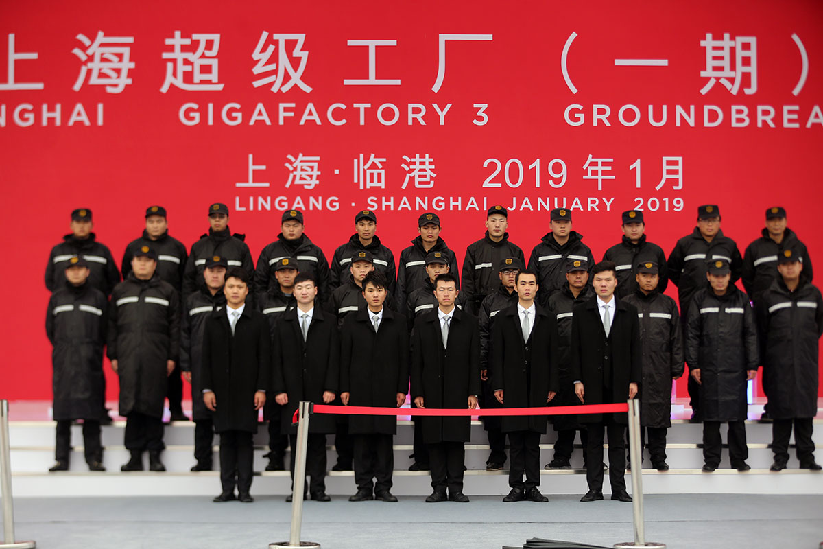 2019年1月7日,特斯拉上海超級工廠在臨港舉行盛大的開工典禮,宗保駐臨港項目承擔了此次活動的現(xiàn)場保障工作。