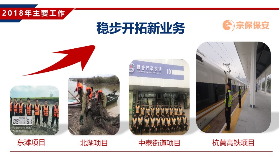 不忘初心,牢記使命。2018年,全公司配合城管勸導流動攤販857924起,勸阻跨門經(jīng)營約738923起,引導、擺放車輛1839682輛;配合民警盤查人員375985人、盤查非機動車493453次、盤查機動車83672次、登記人口80多萬;配合交警清查非法營運車輛7853輛、交通疏導596853人次。天量數(shù)據(jù)的背后,是宗保人對自己承諾的嚴格落實,對甲方單位的認真負責,對業(yè)務工作的一絲不茍。