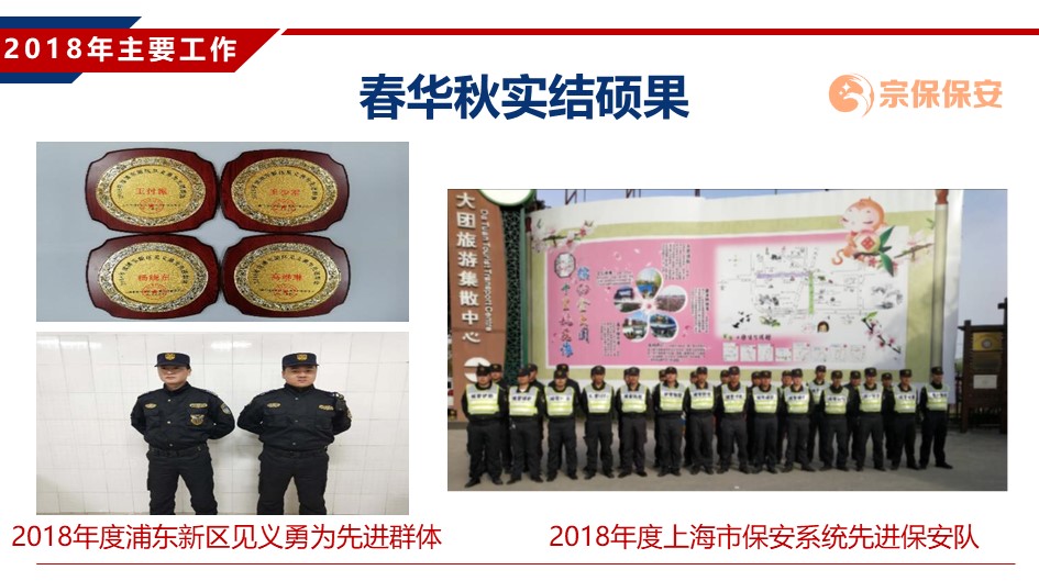 春風浩蕩滿目新,不負韶光萬里程。胡金玲被評為“2018年度上海市保安系統(tǒng)十佳保安員”,宗保保安駐大團鎮(zhèn)城管輔助中隊被評為“2018年度上海市保安系統(tǒng)先進保安隊”,王少軍、王付振等被評為“2018年度浦東新區(qū)見義勇為先進群體”。