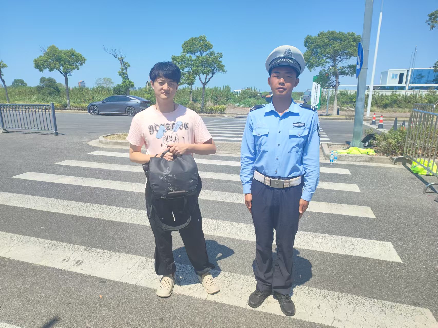 9月6日9時(shí)許,宗保公司員工侯林森在臨港海堤執(zhí)行交通管控任務(wù)期間,撿到一個(gè)黑色背包,內(nèi)有一部相機(jī)和一張身份證。侯林森第一時(shí)間將情況報(bào)告了班組長,并主動(dòng)留在原地等候失主認(rèn)領(lǐng)。