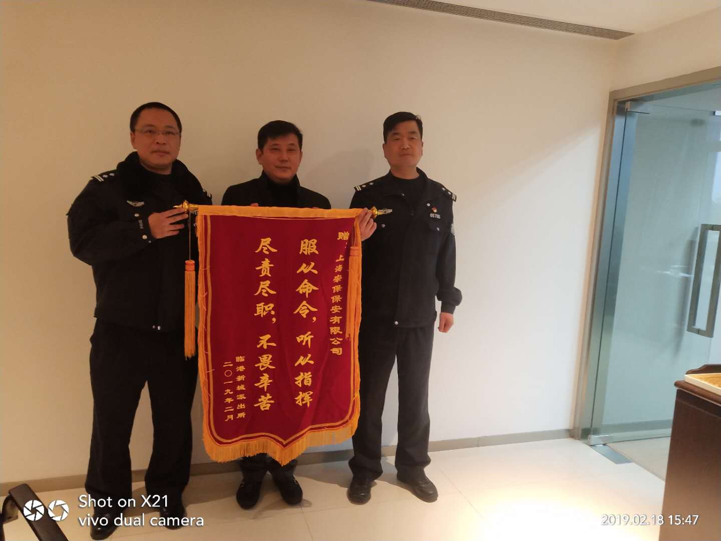2019年2月18日,臨港派出所領(lǐng)導將一面錦旗送到宗保公司總經(jīng)理晏軍手中,對公司本項目隊伍2018年度工作表示高度肯定!