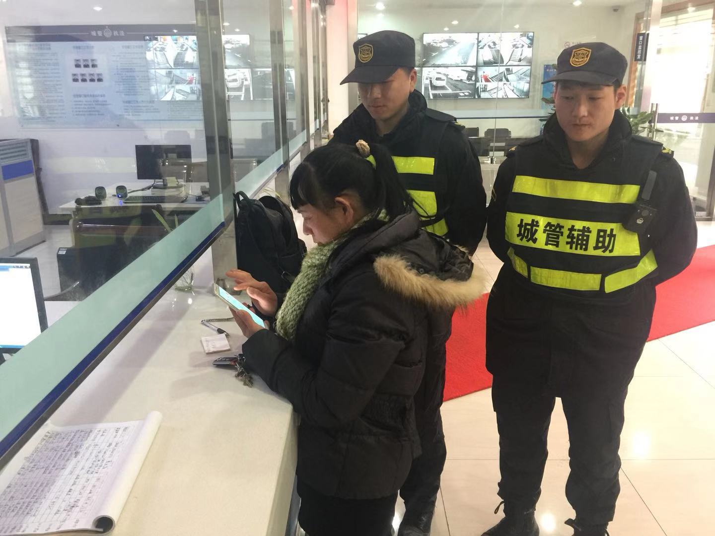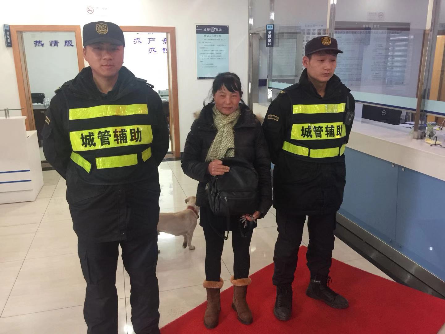經(jīng)聯(lián)系,失主張女士趕到周浦城管中隊,確認身份后,領回自己遺失的手提包。