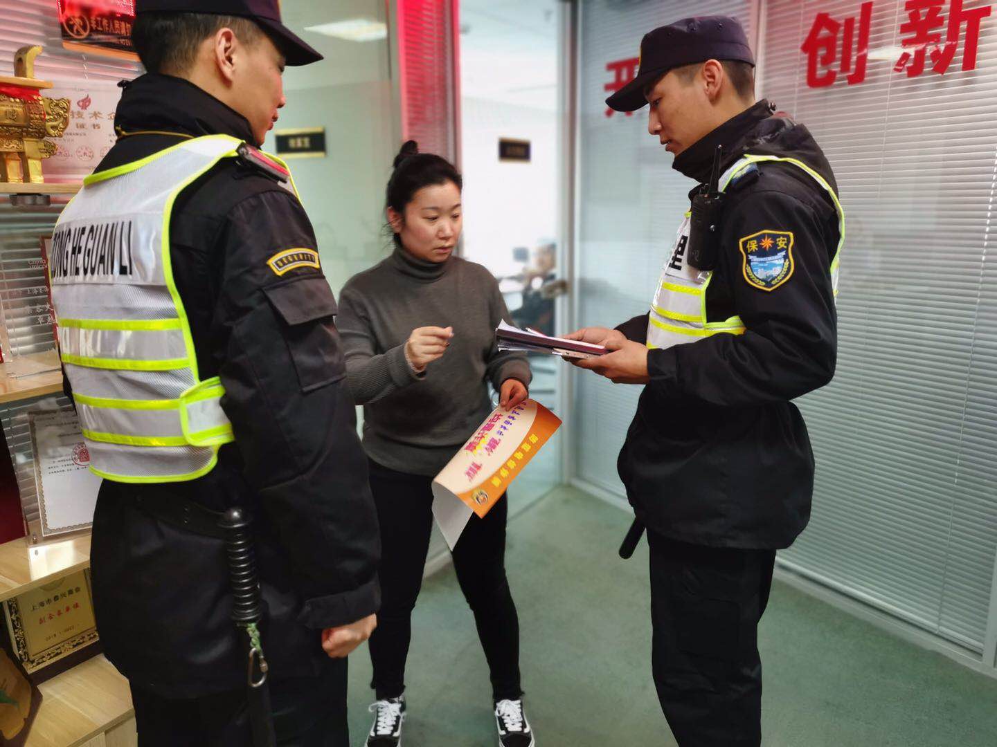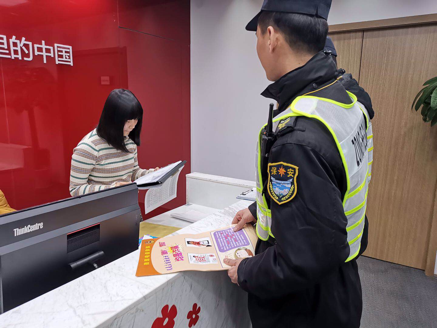 2019年3月22日,宗保駐陸家嘴項(xiàng)目余澤權(quán)走進(jìn)新大陸廣場(chǎng)某商鋪派發(fā)防范電信詐騙宣傳資料,受到商戶(hù)贊揚(yáng)。
